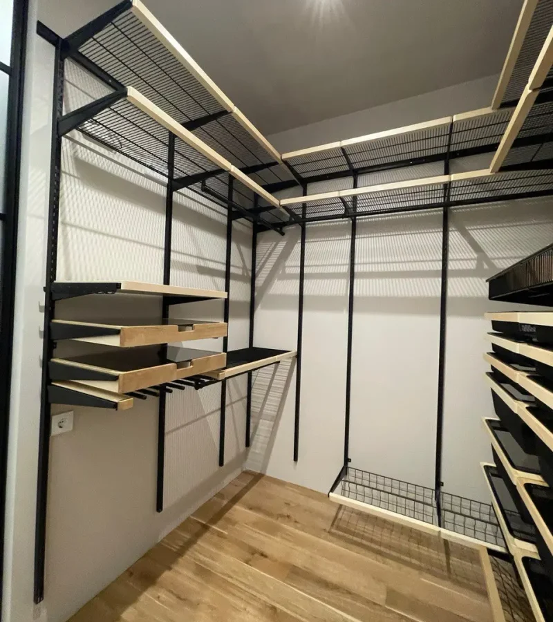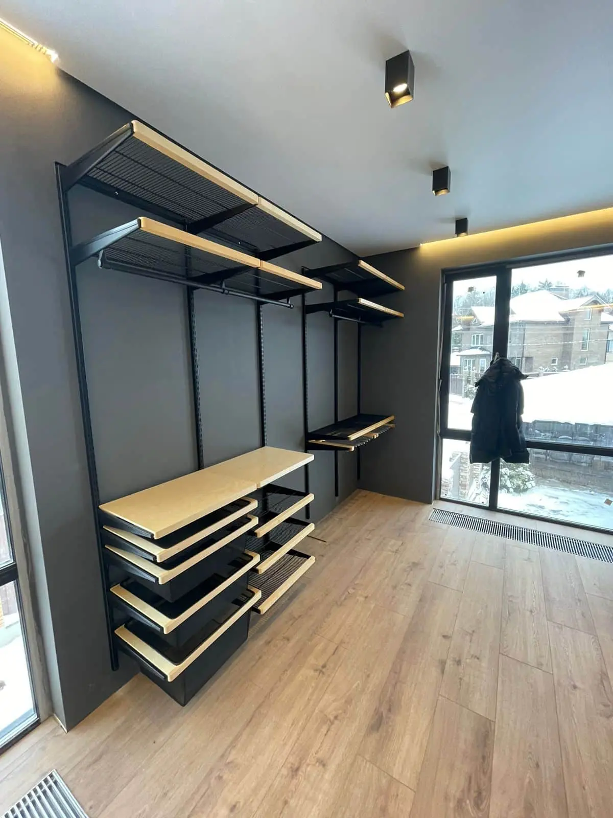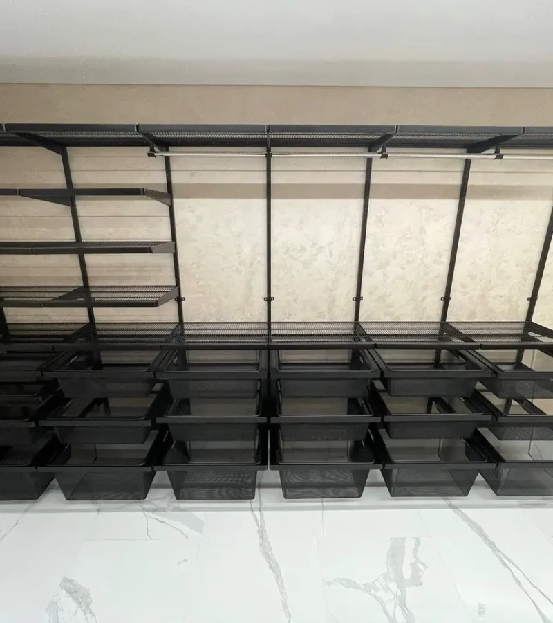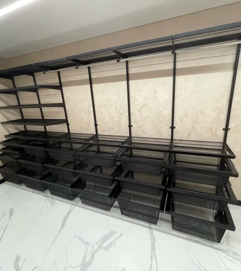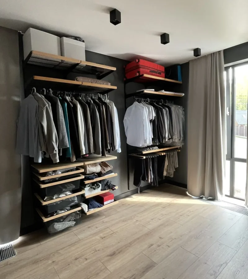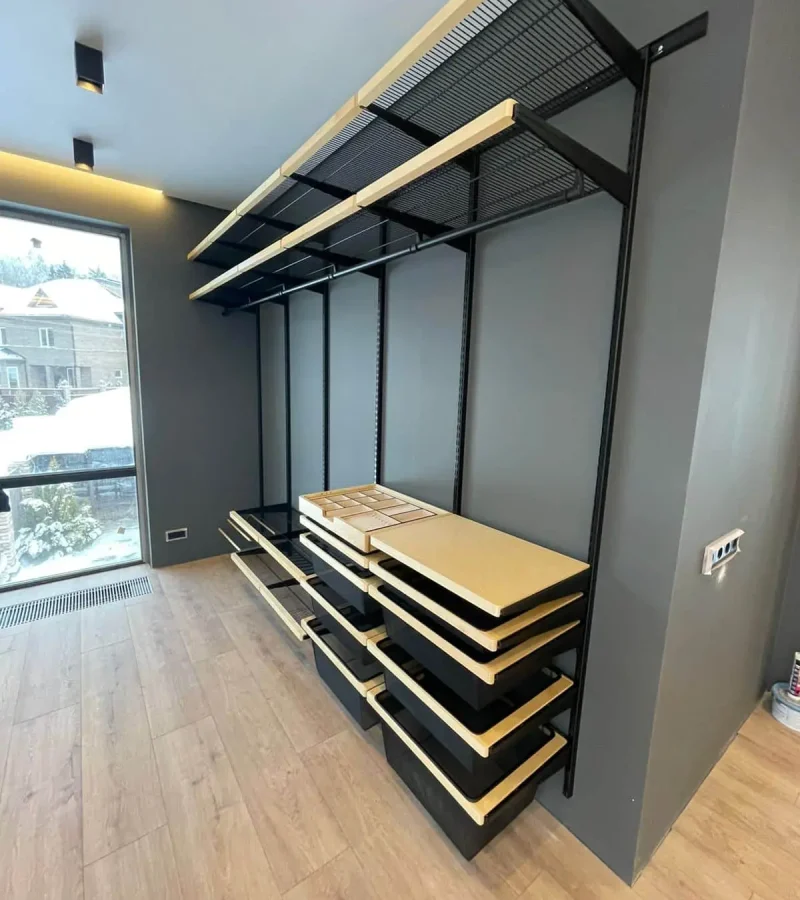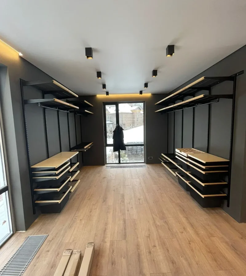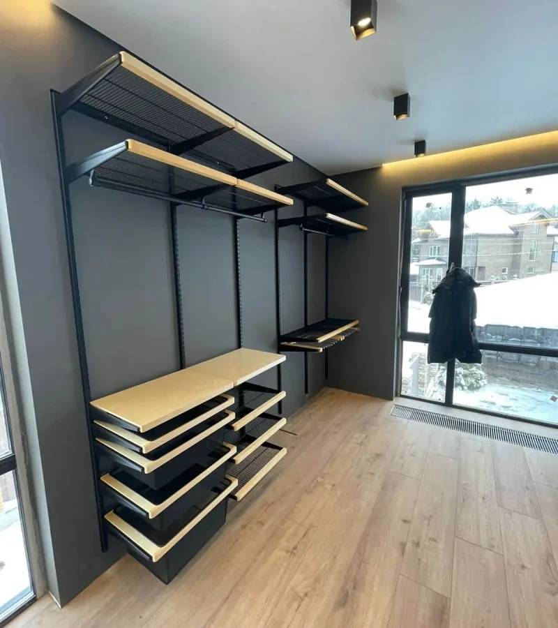 Гардеробная с черной системой хранения