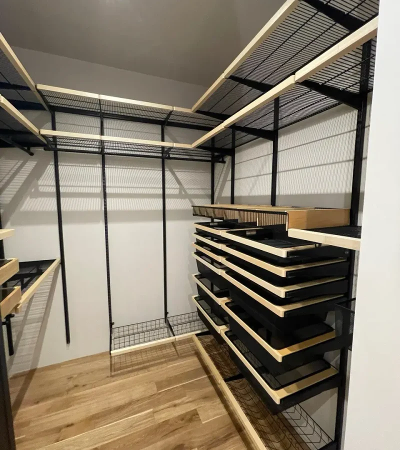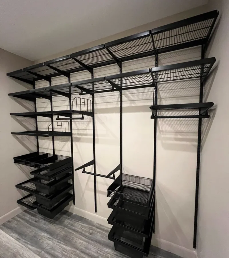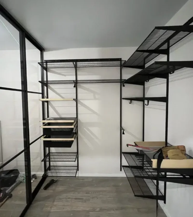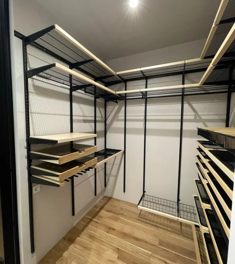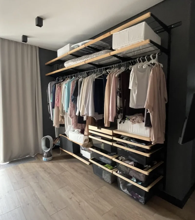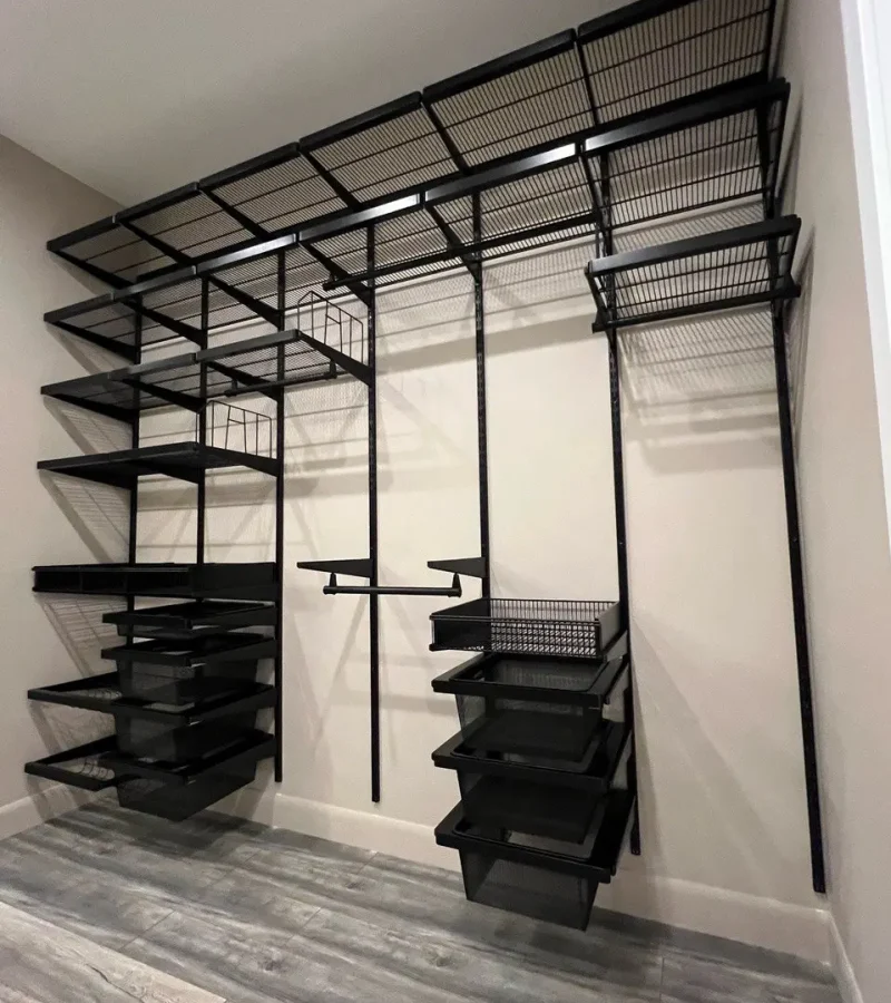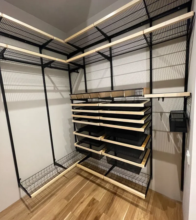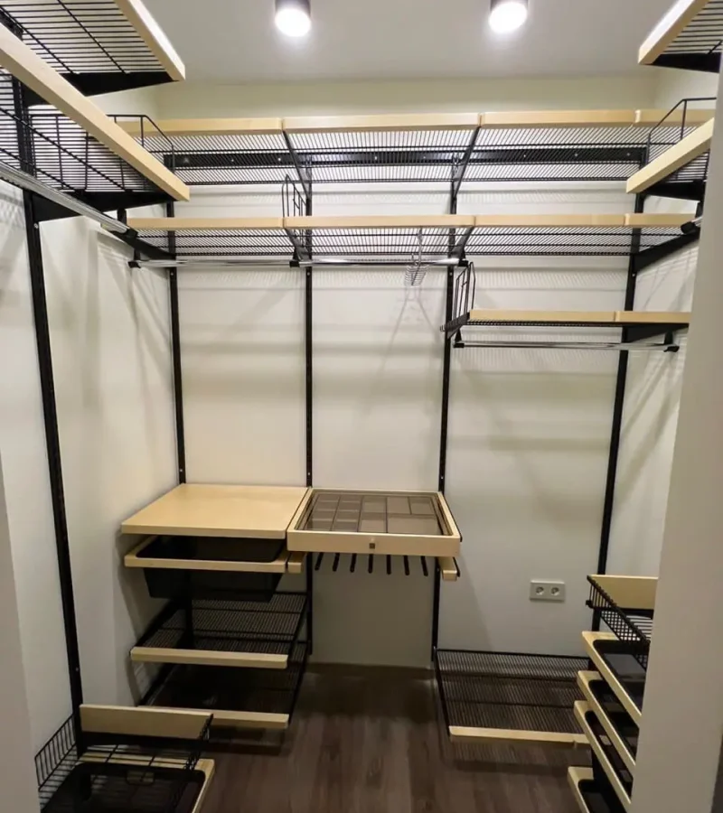 Гардеробная с черной системой хранения