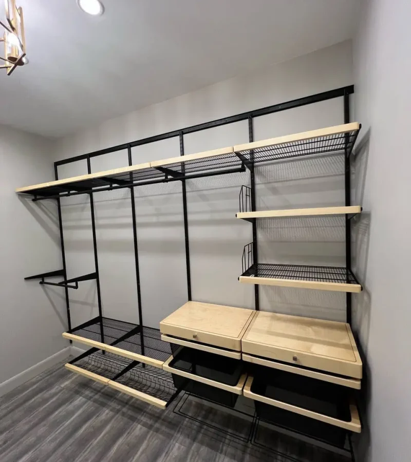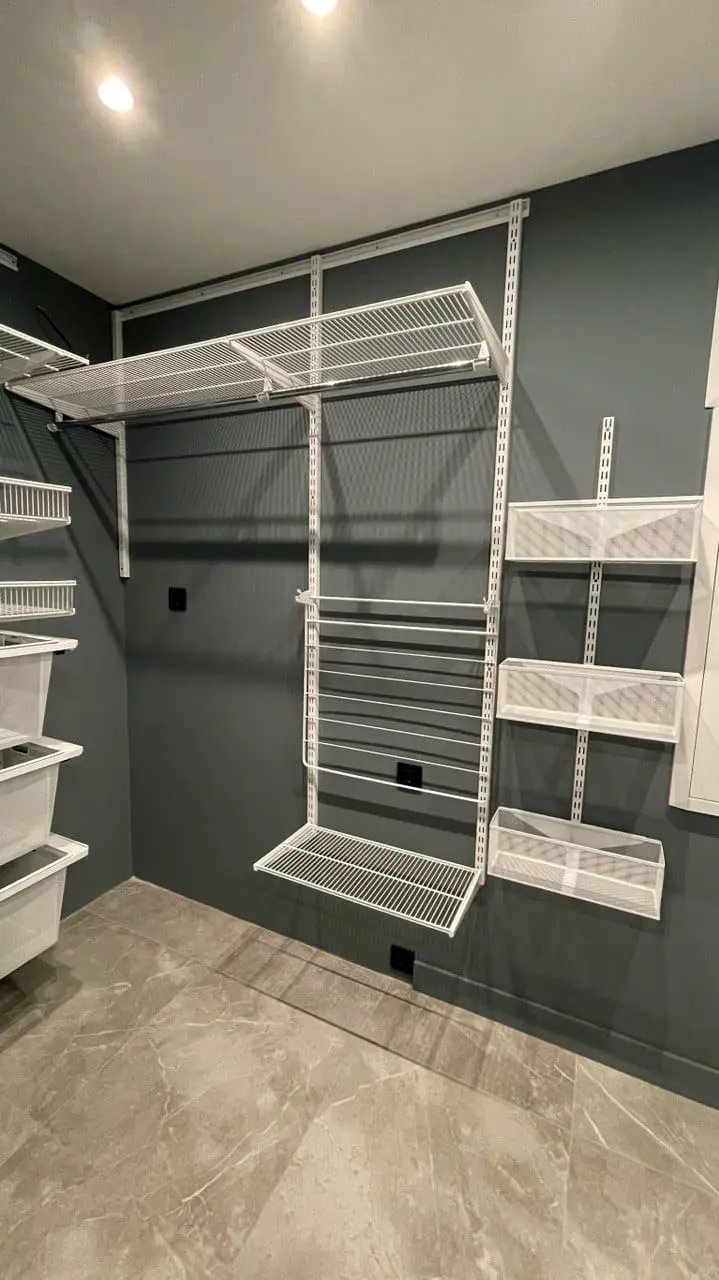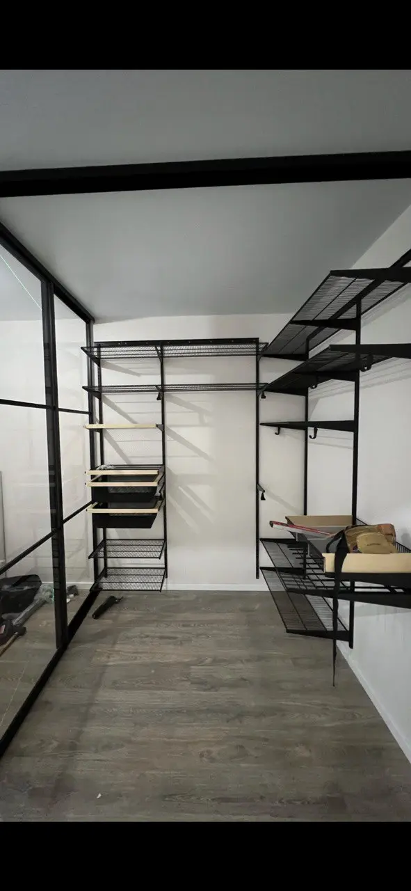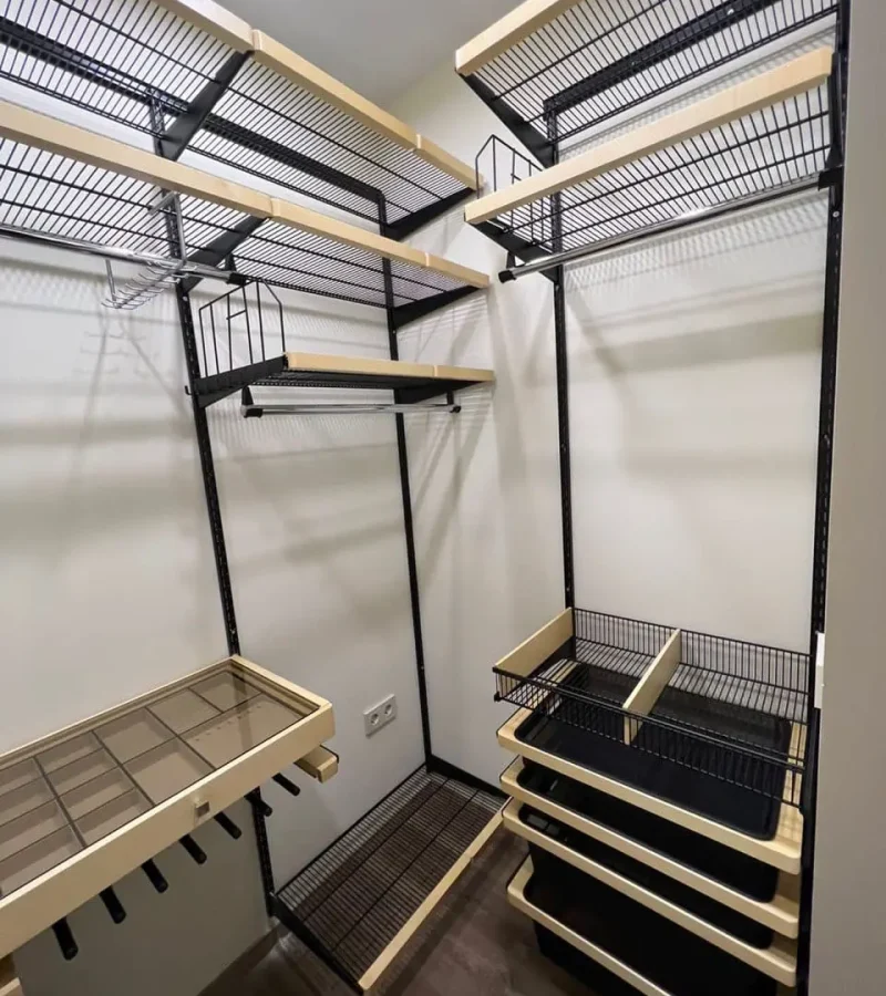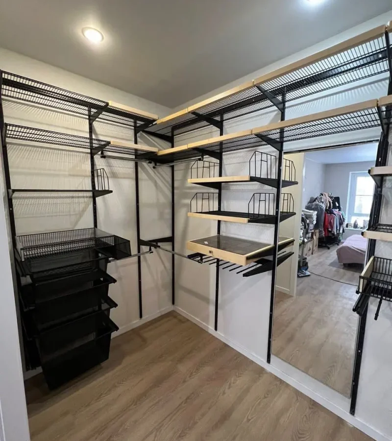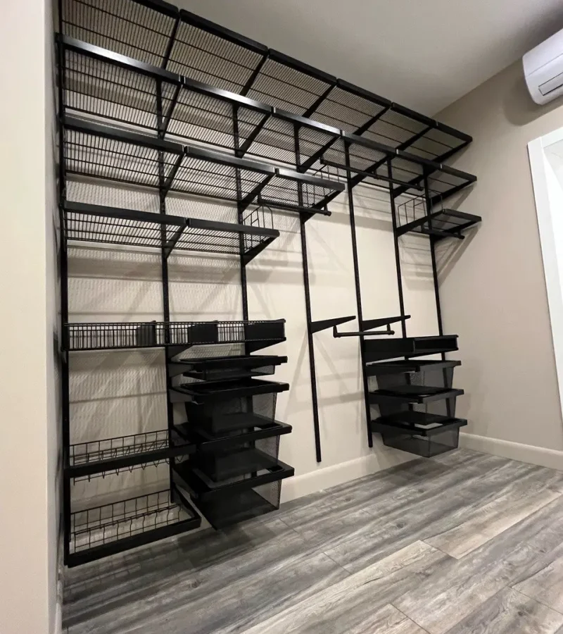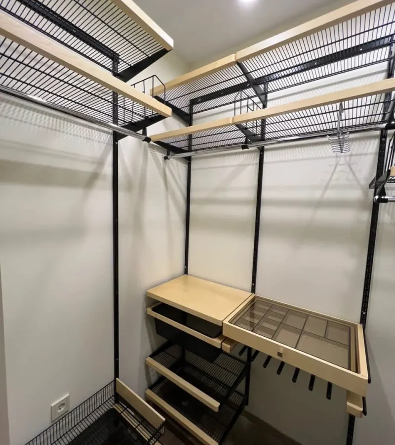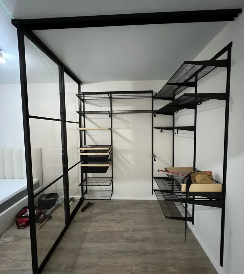 Гардеробная с черной системой хранения