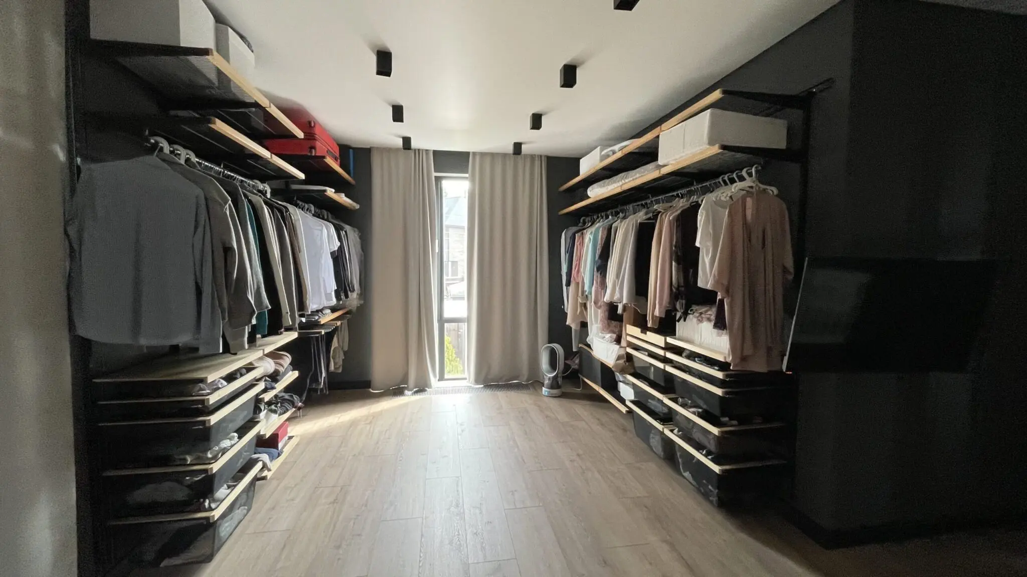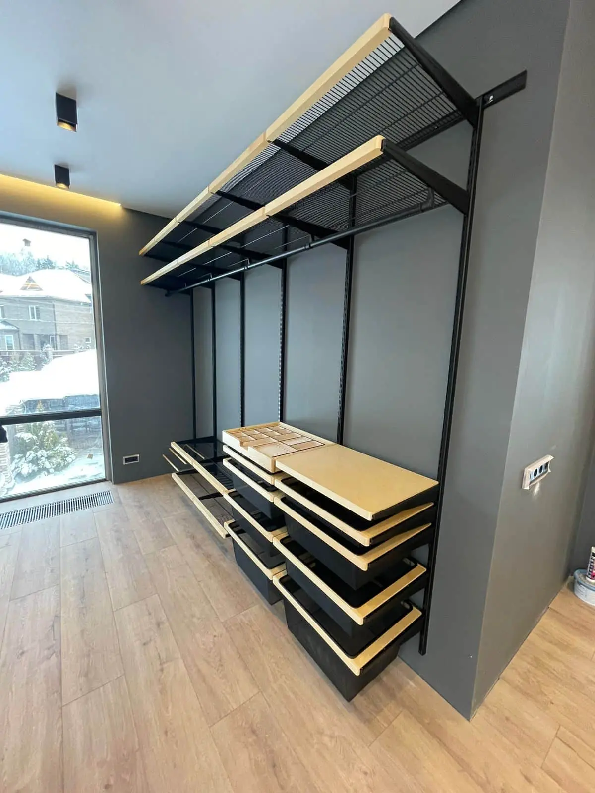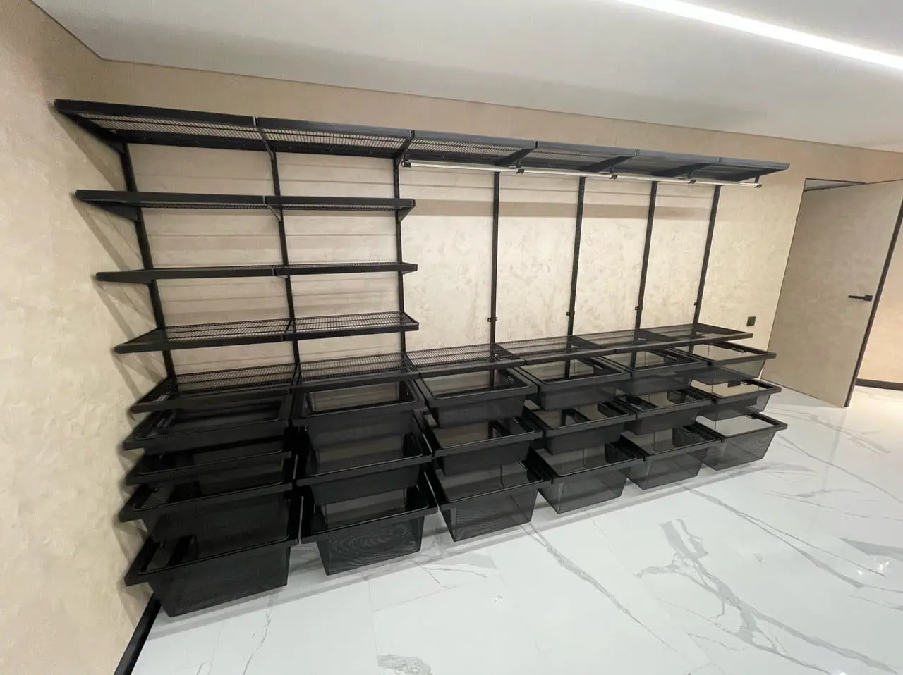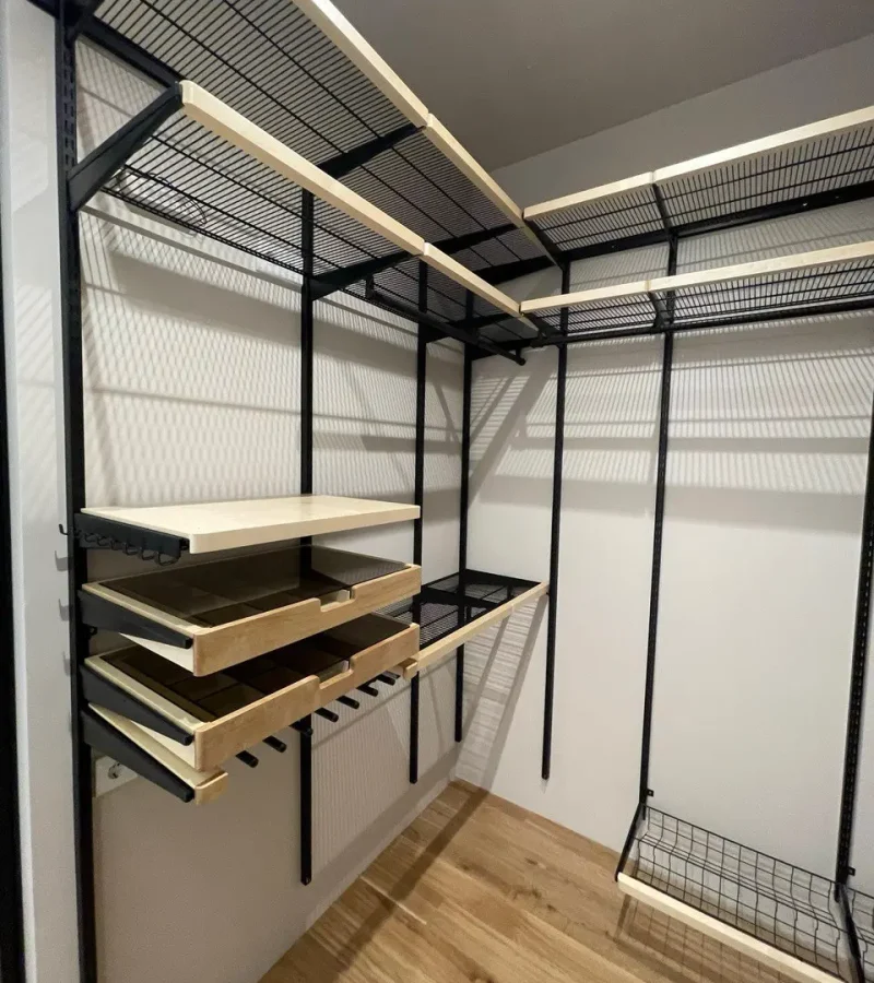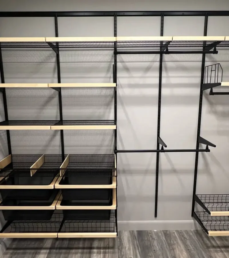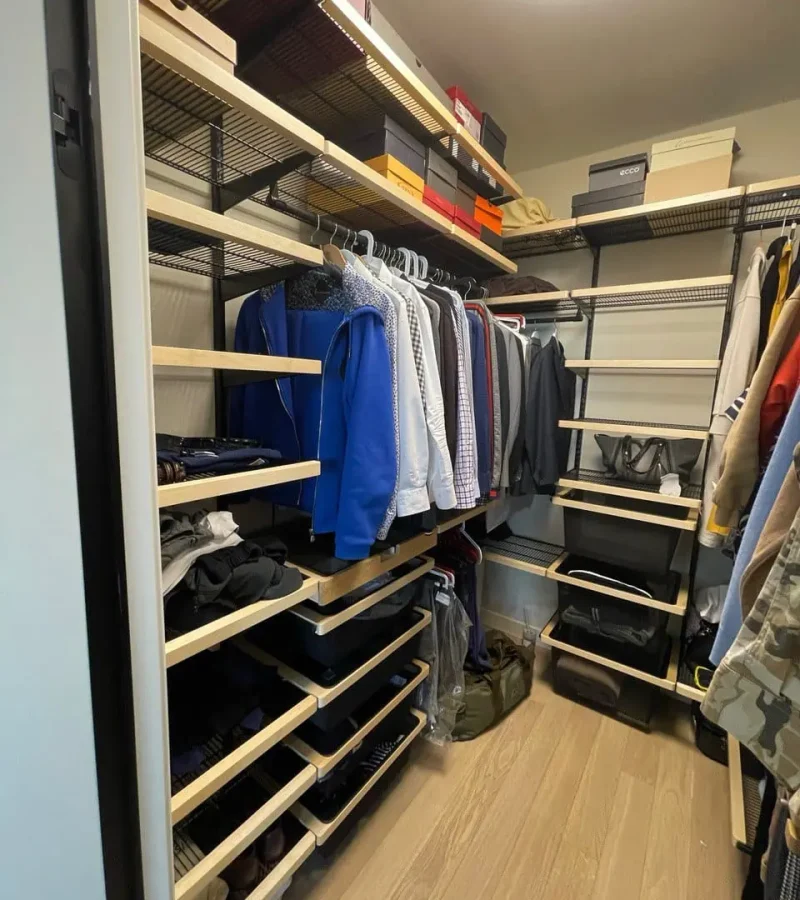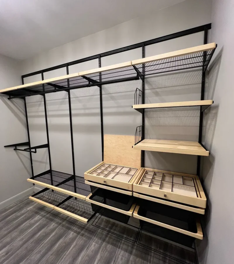 Гардеробная с черной системой хранения
