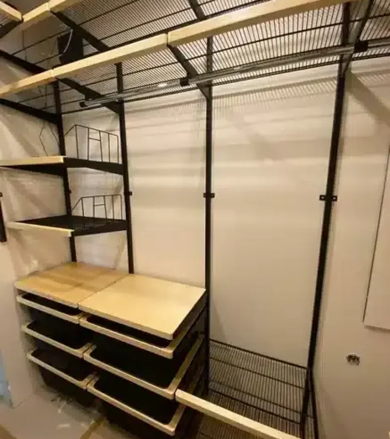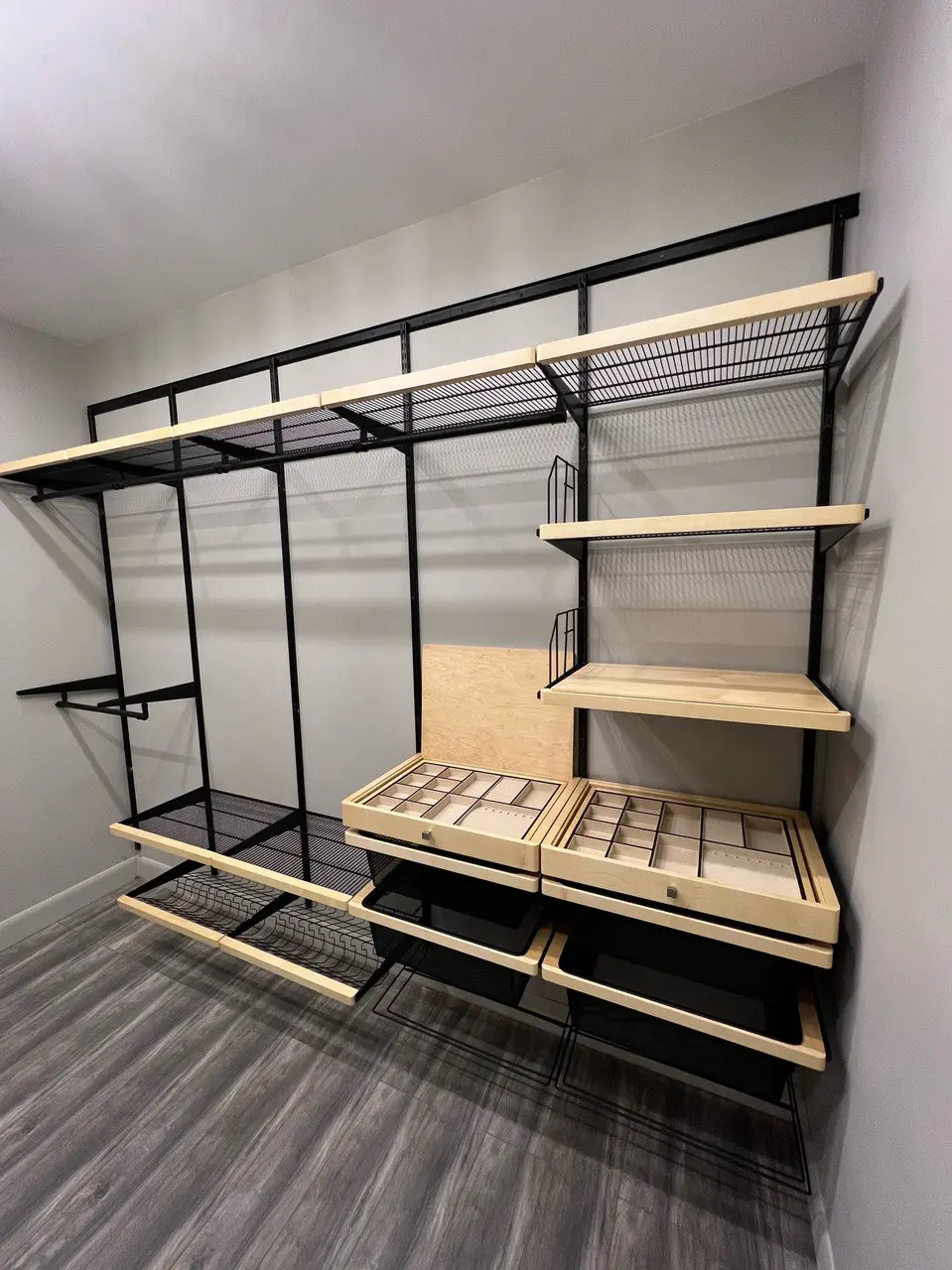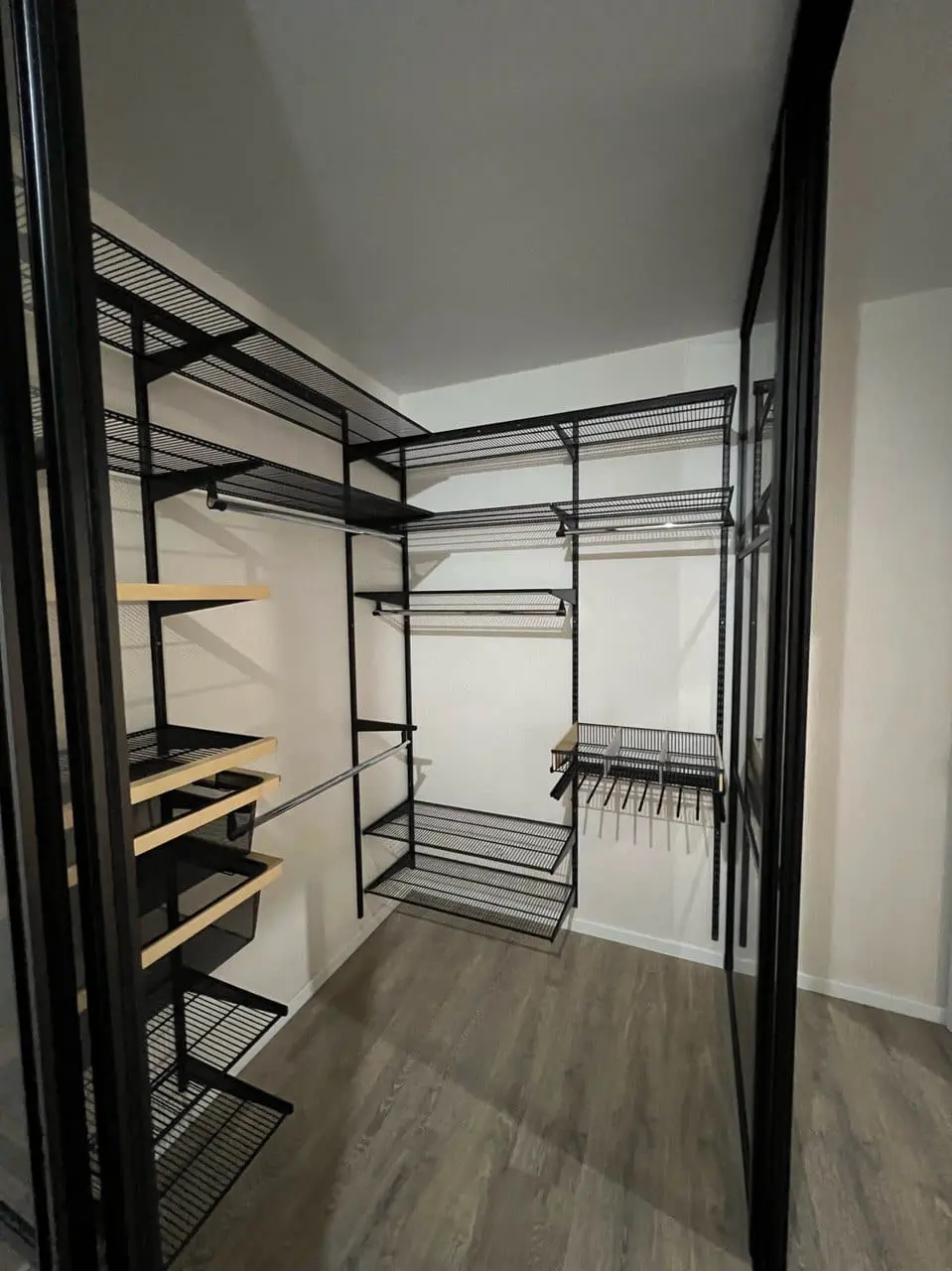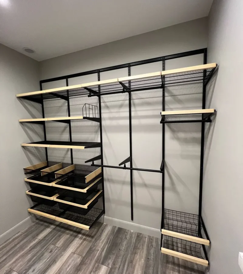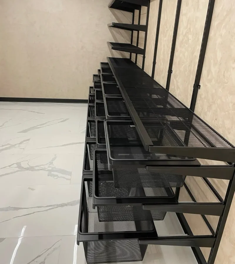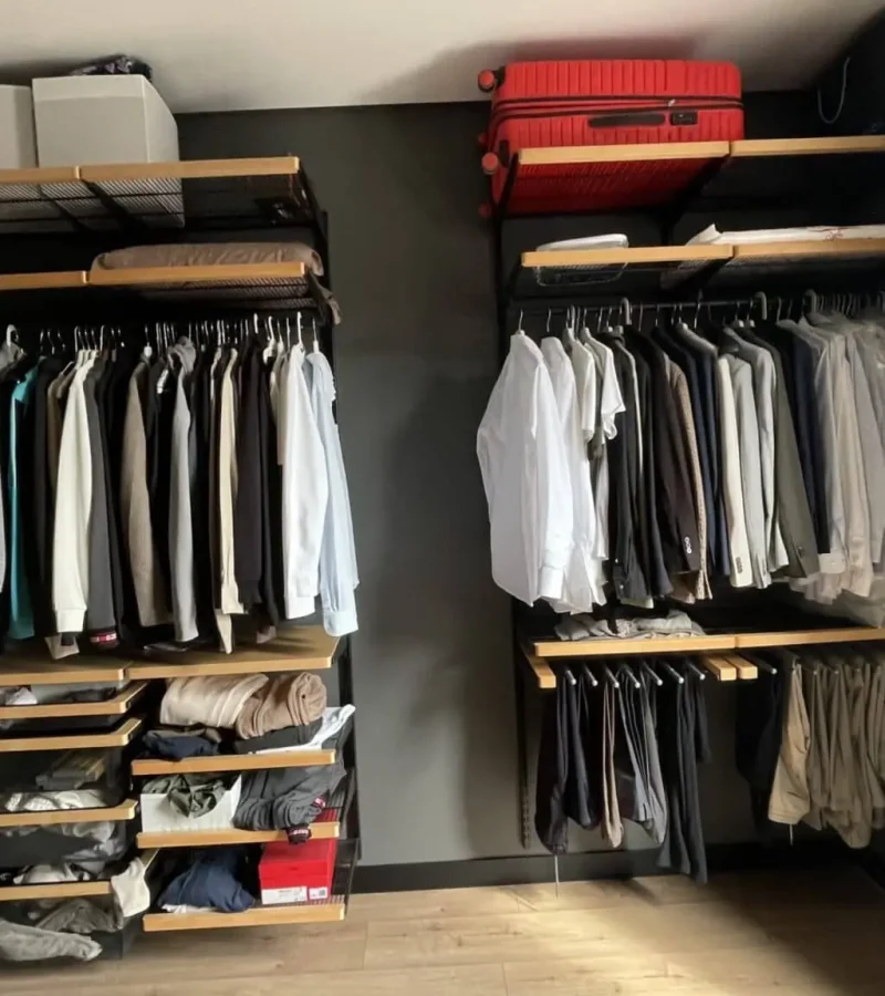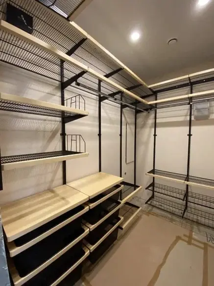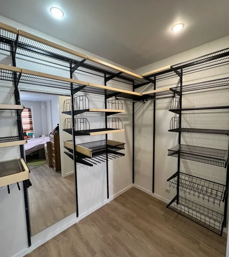 Гардеробная с черной системой хранения