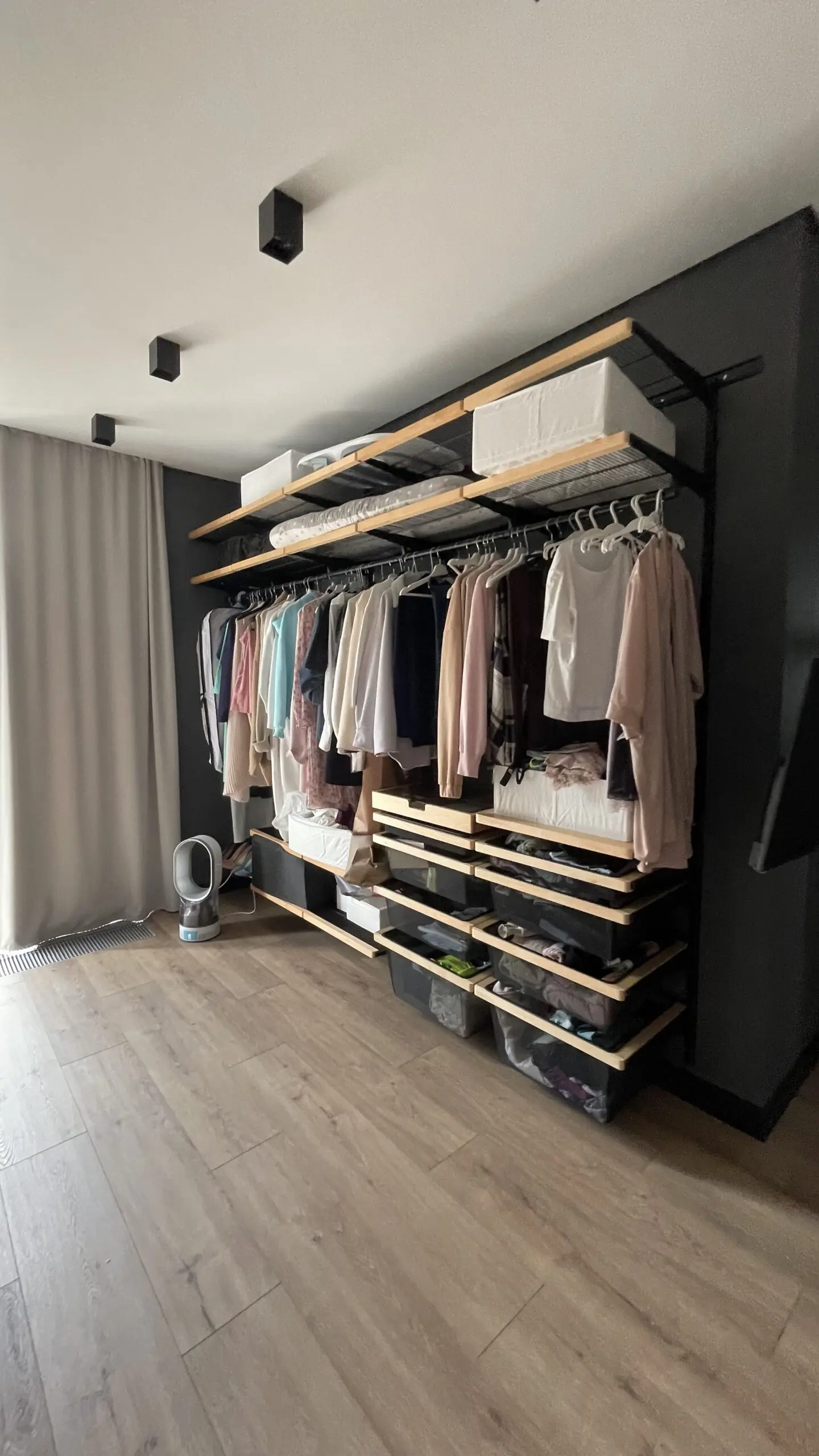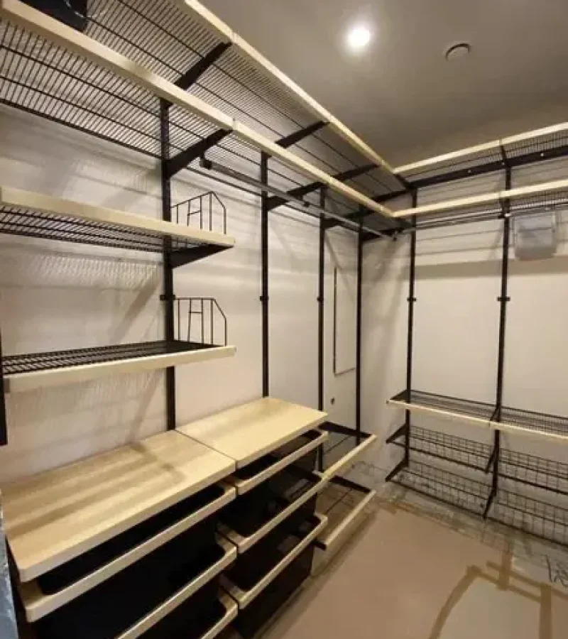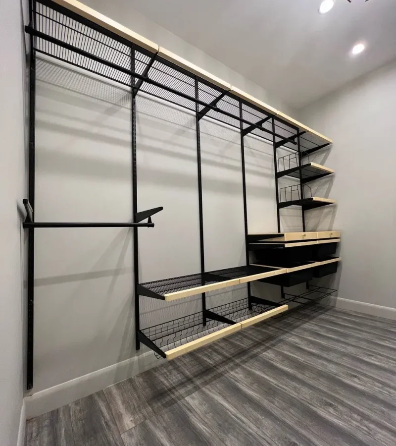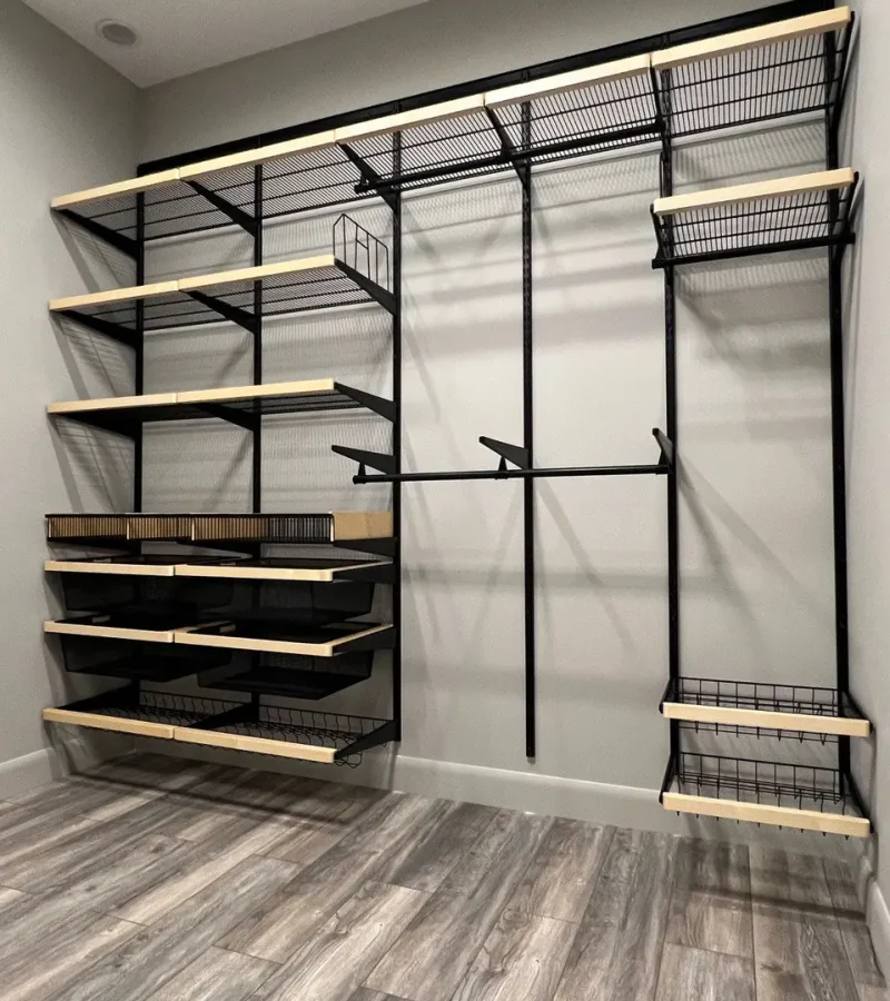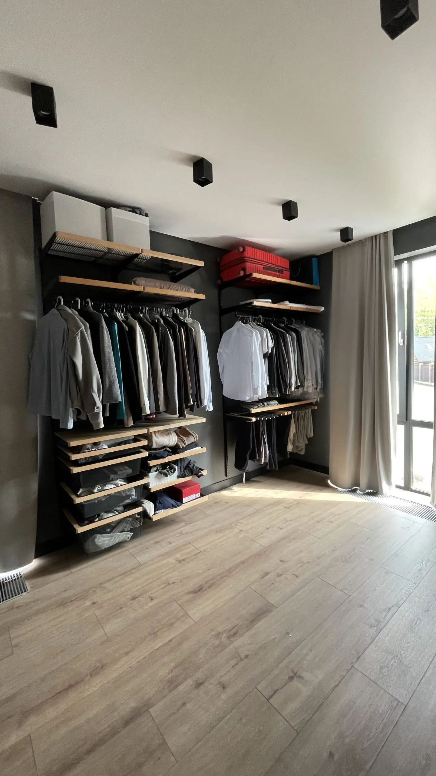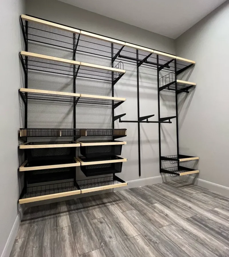 Гардеробная с черной системой хранения