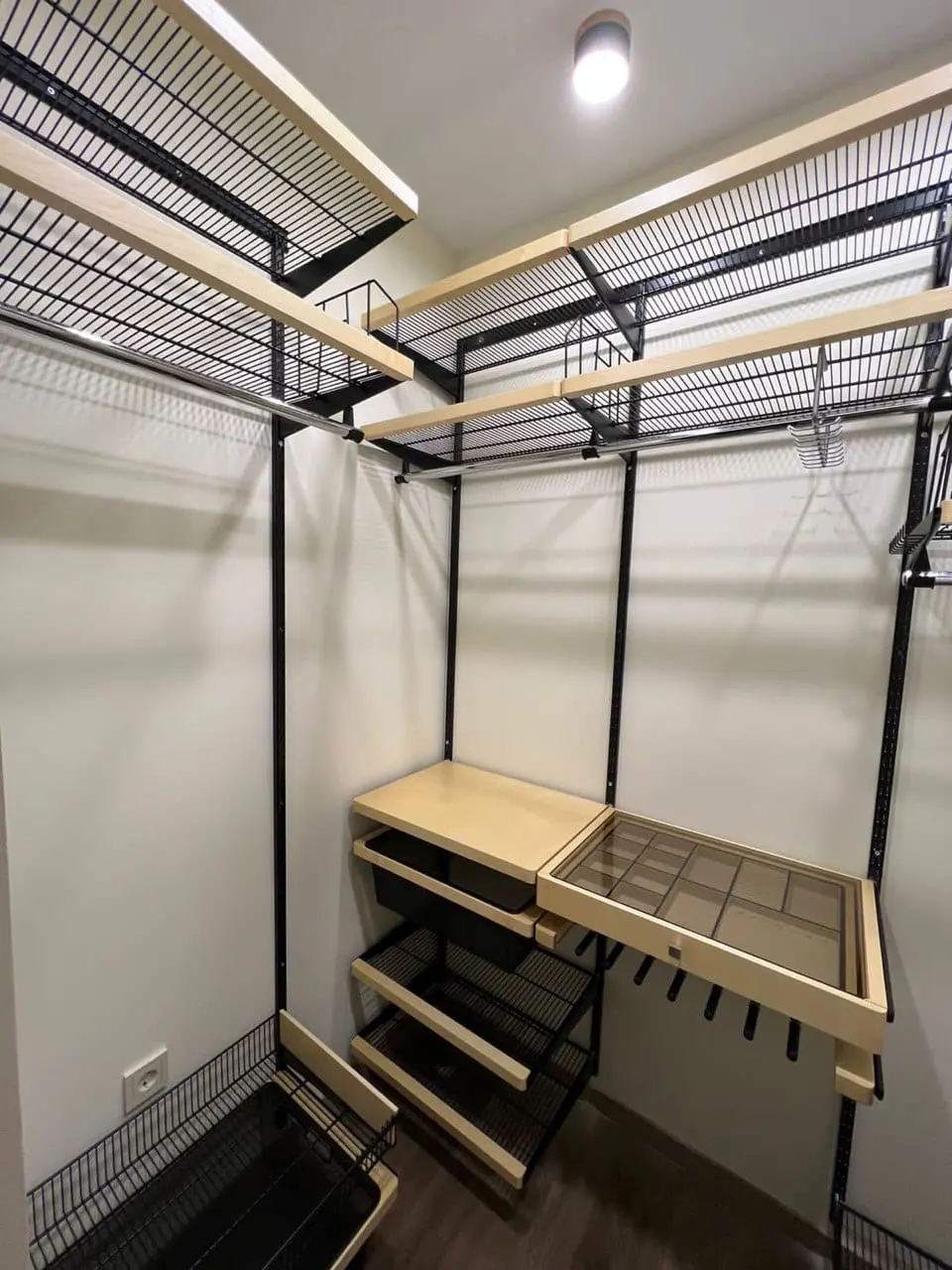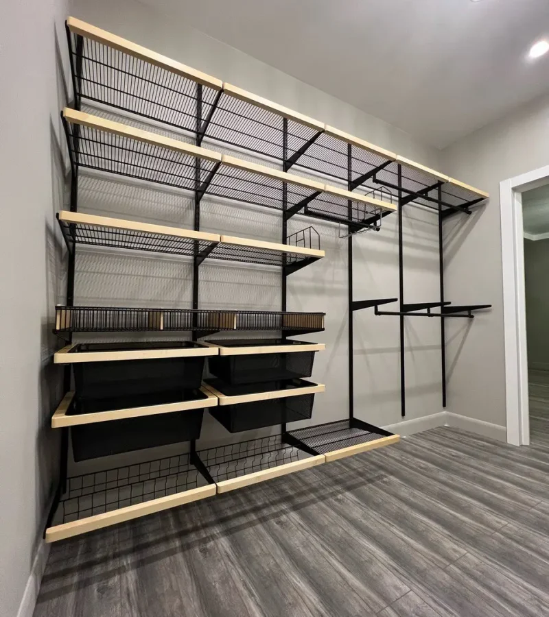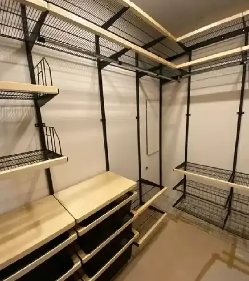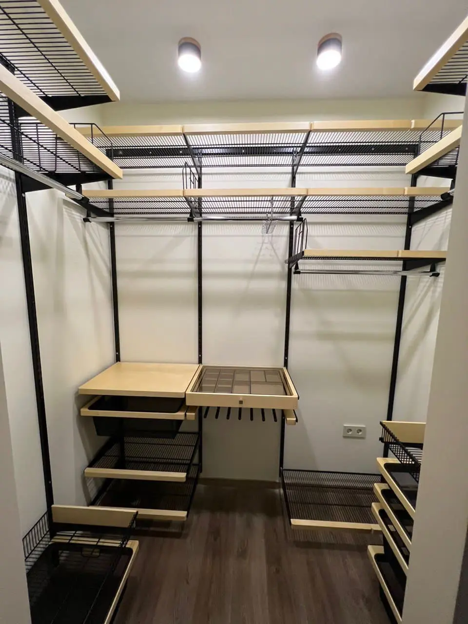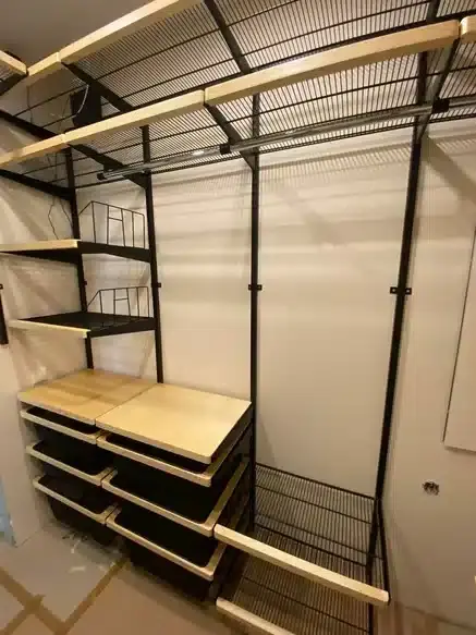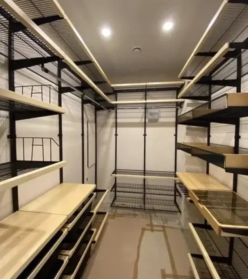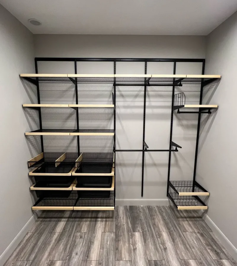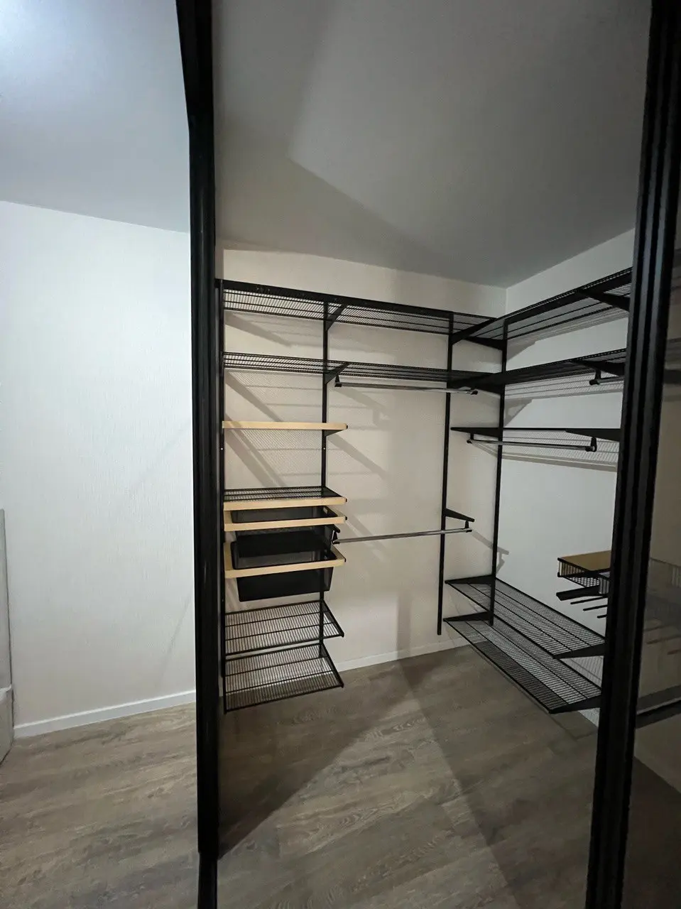 Гардеробная с черной системой хранения