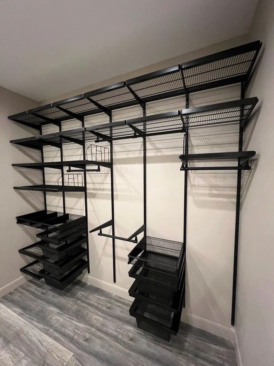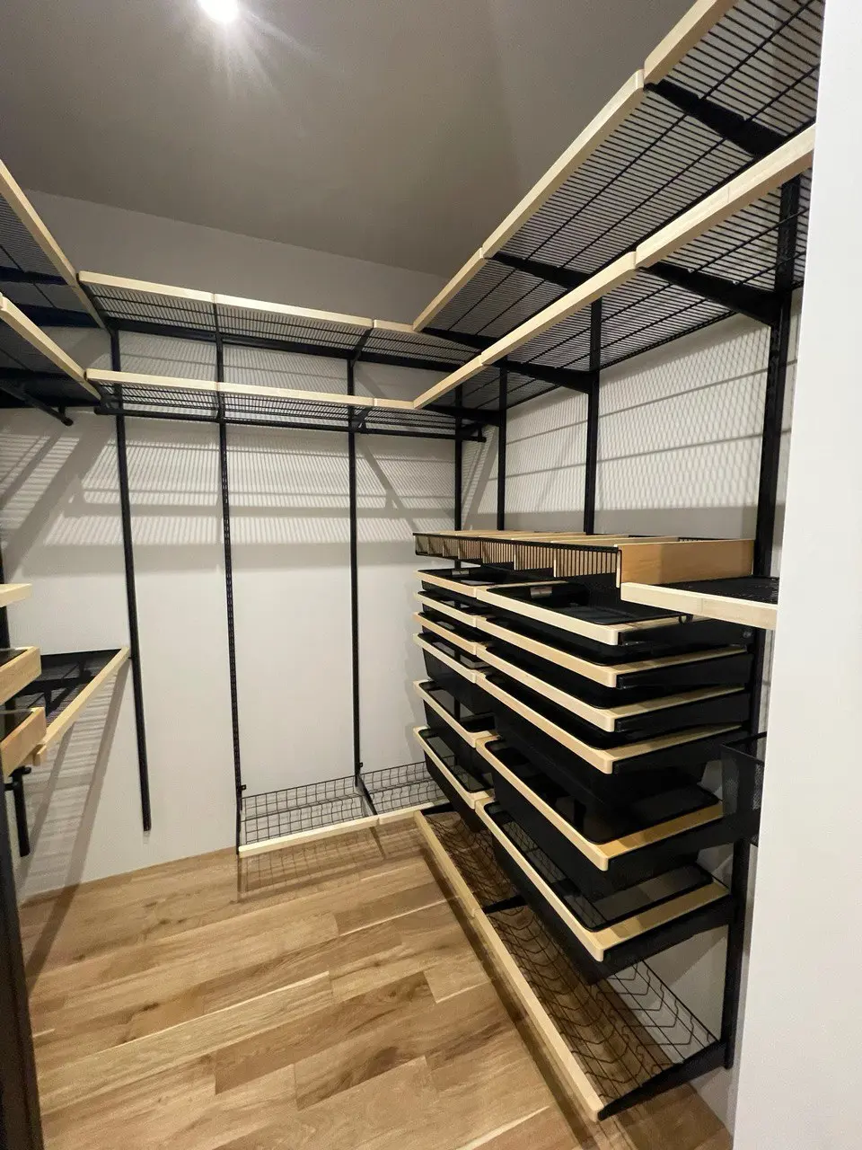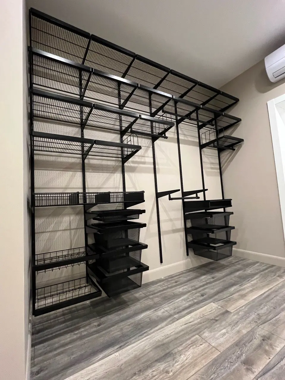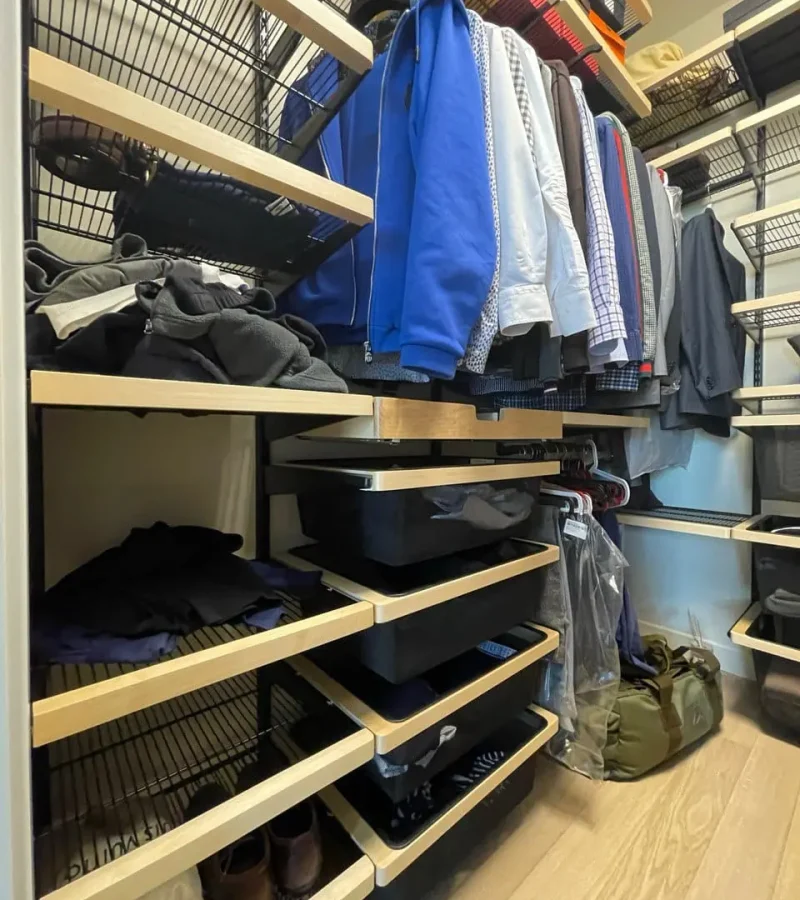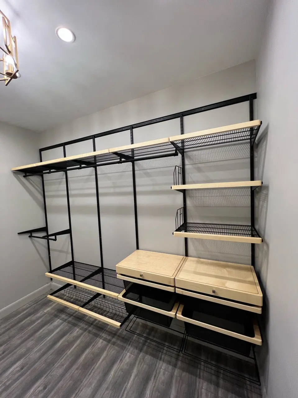 Гардеробная с черной системой хранения