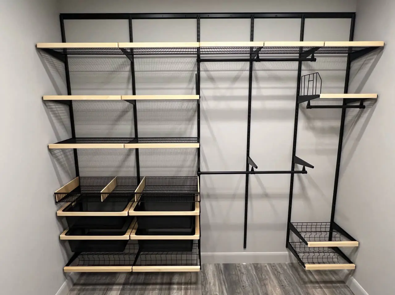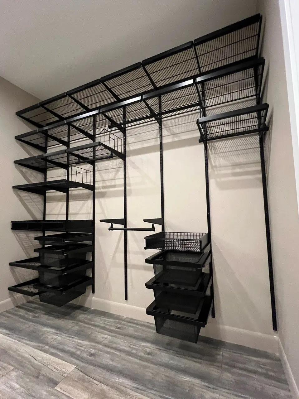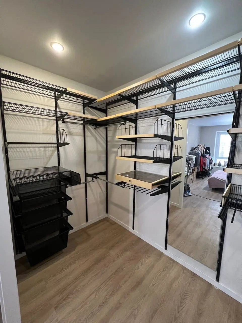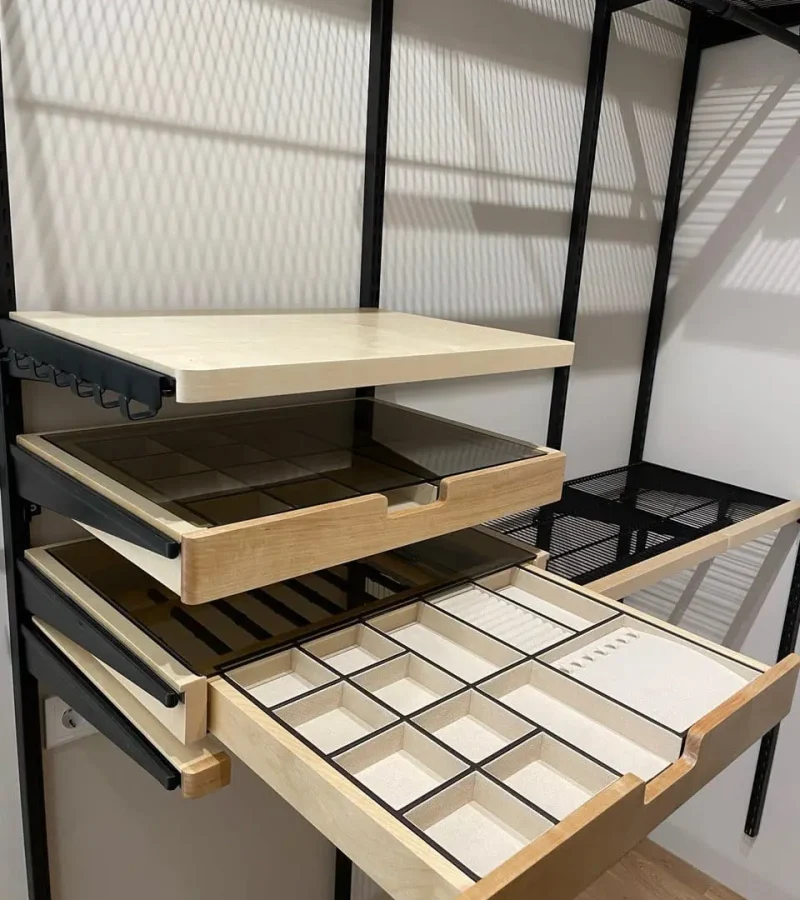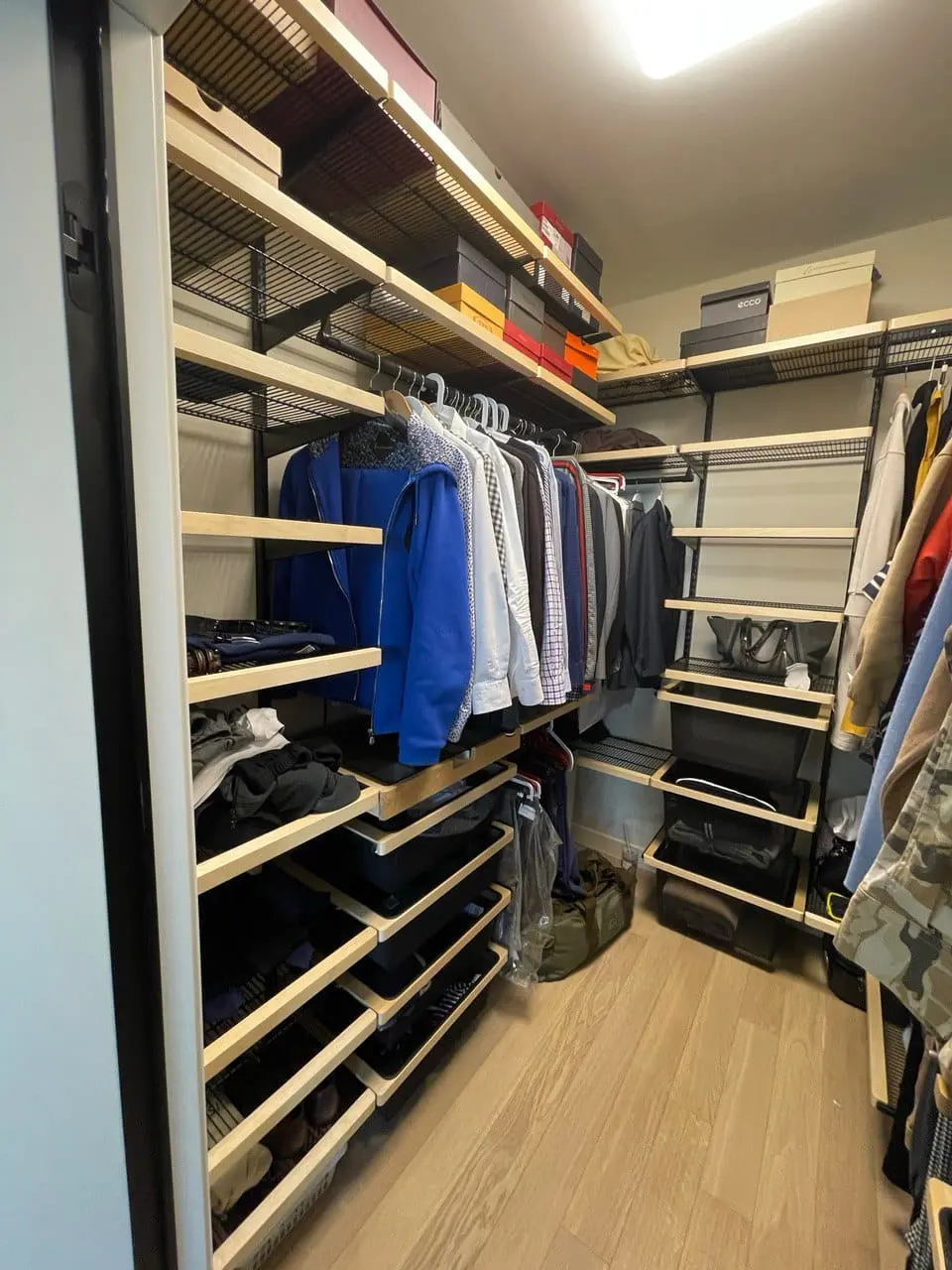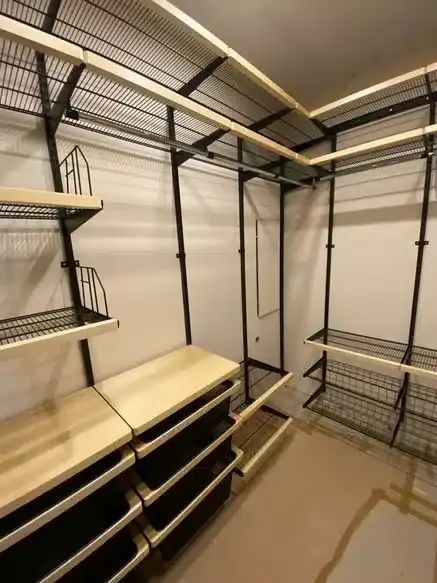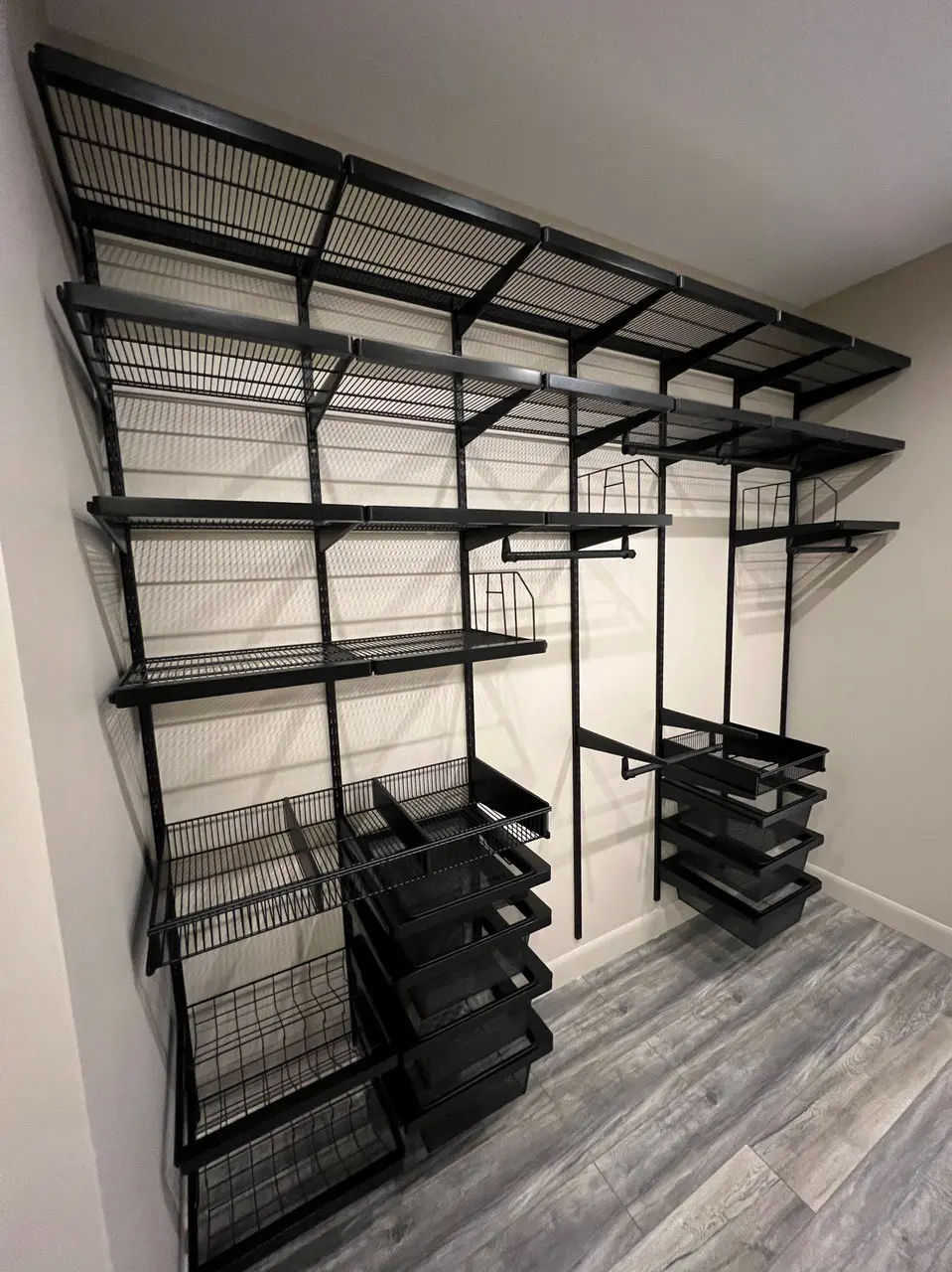 Гардеробная с черной системой хранения