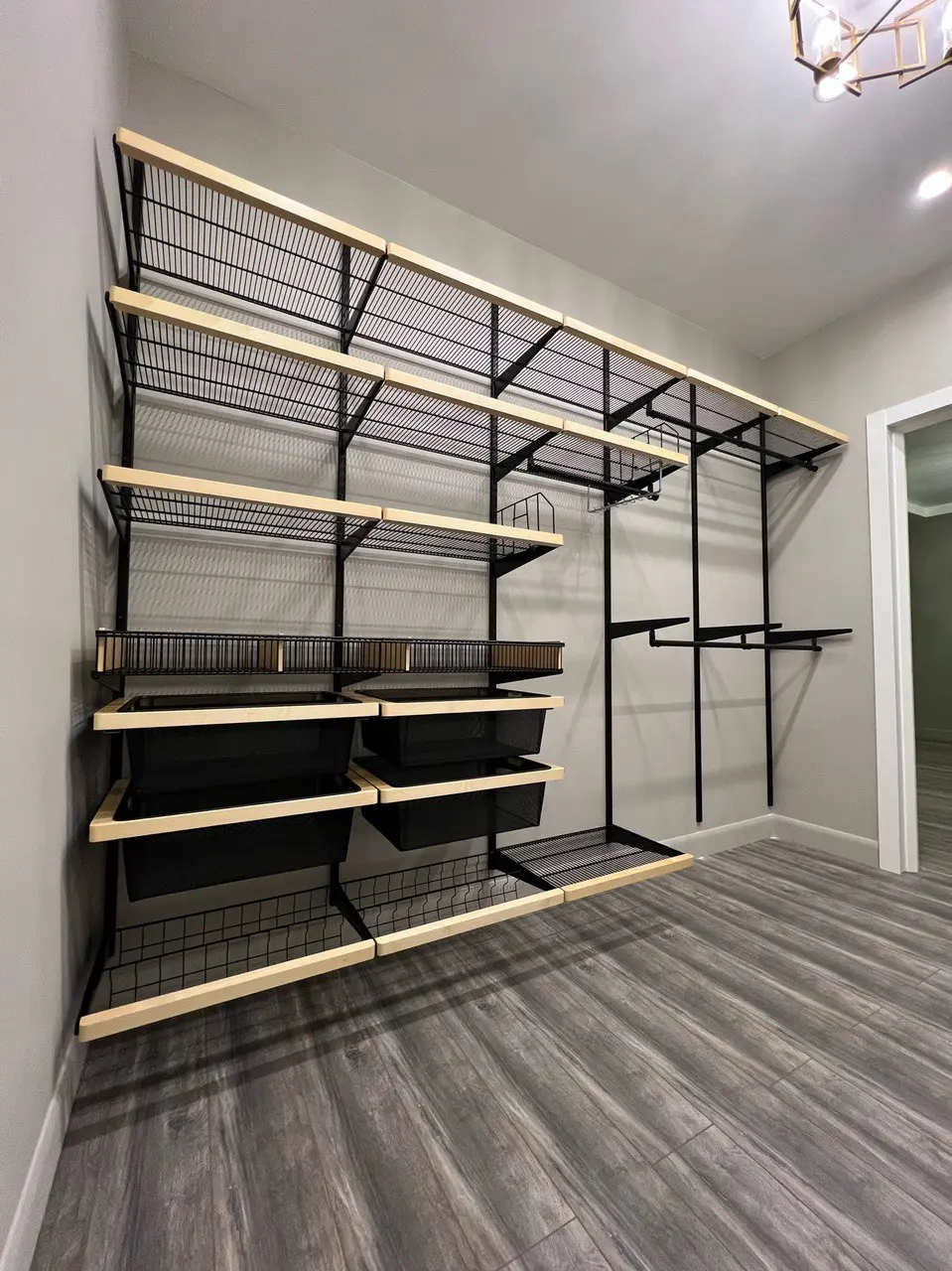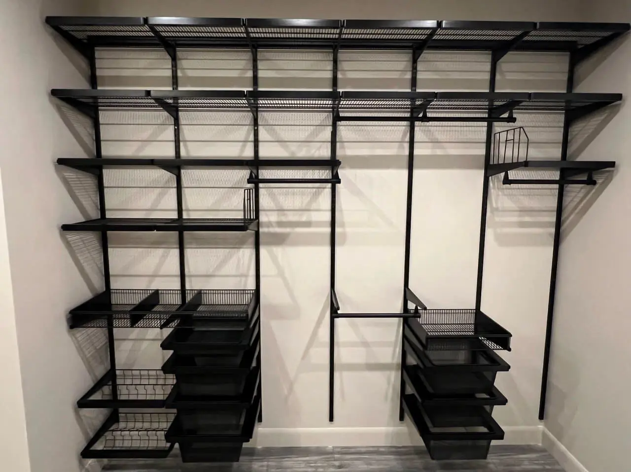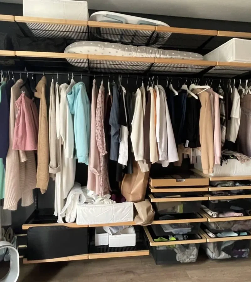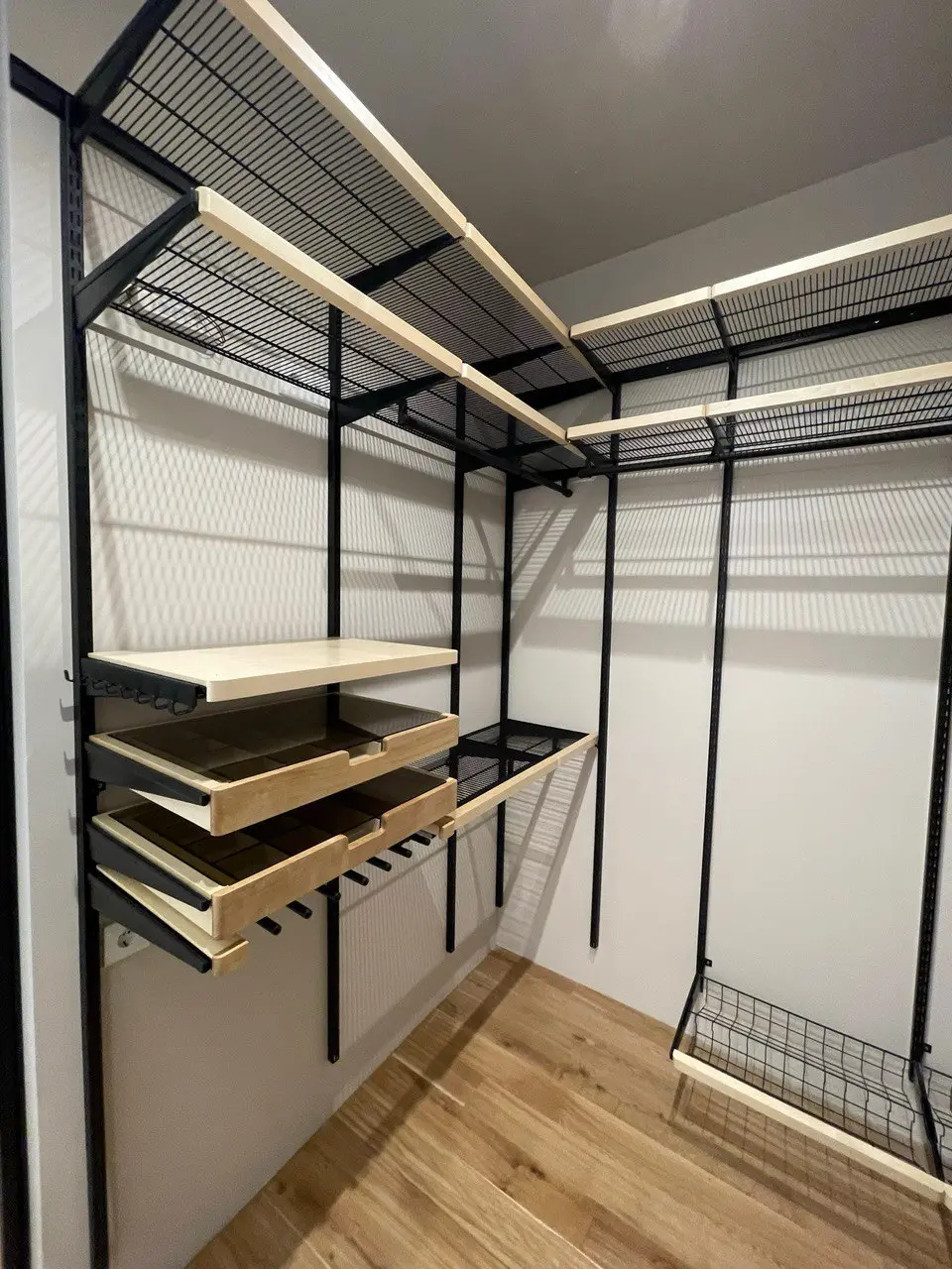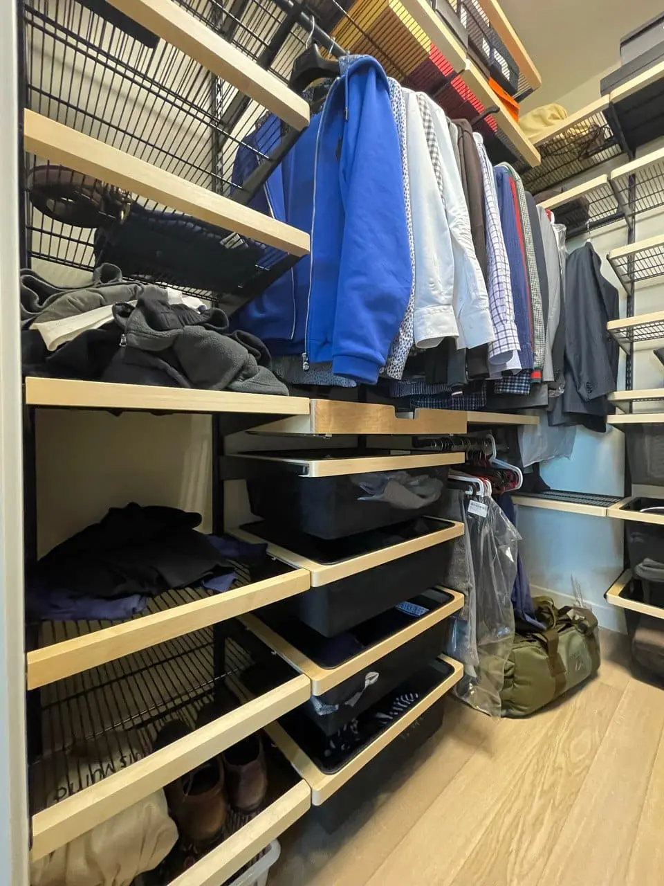 Гардеробная с черной системой хранения