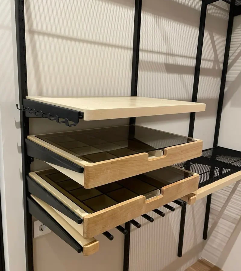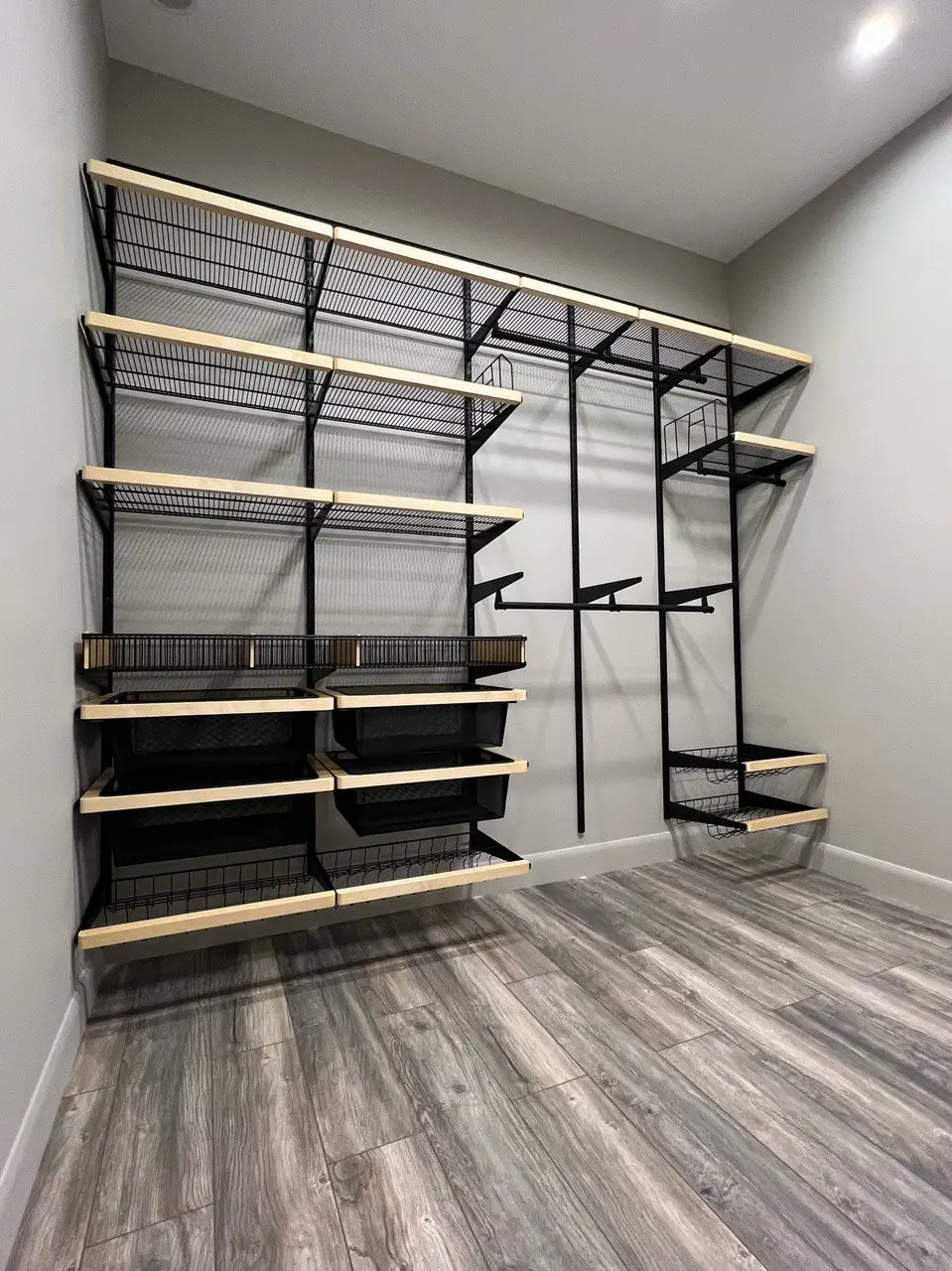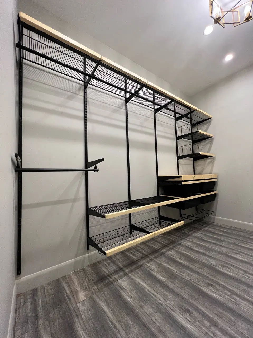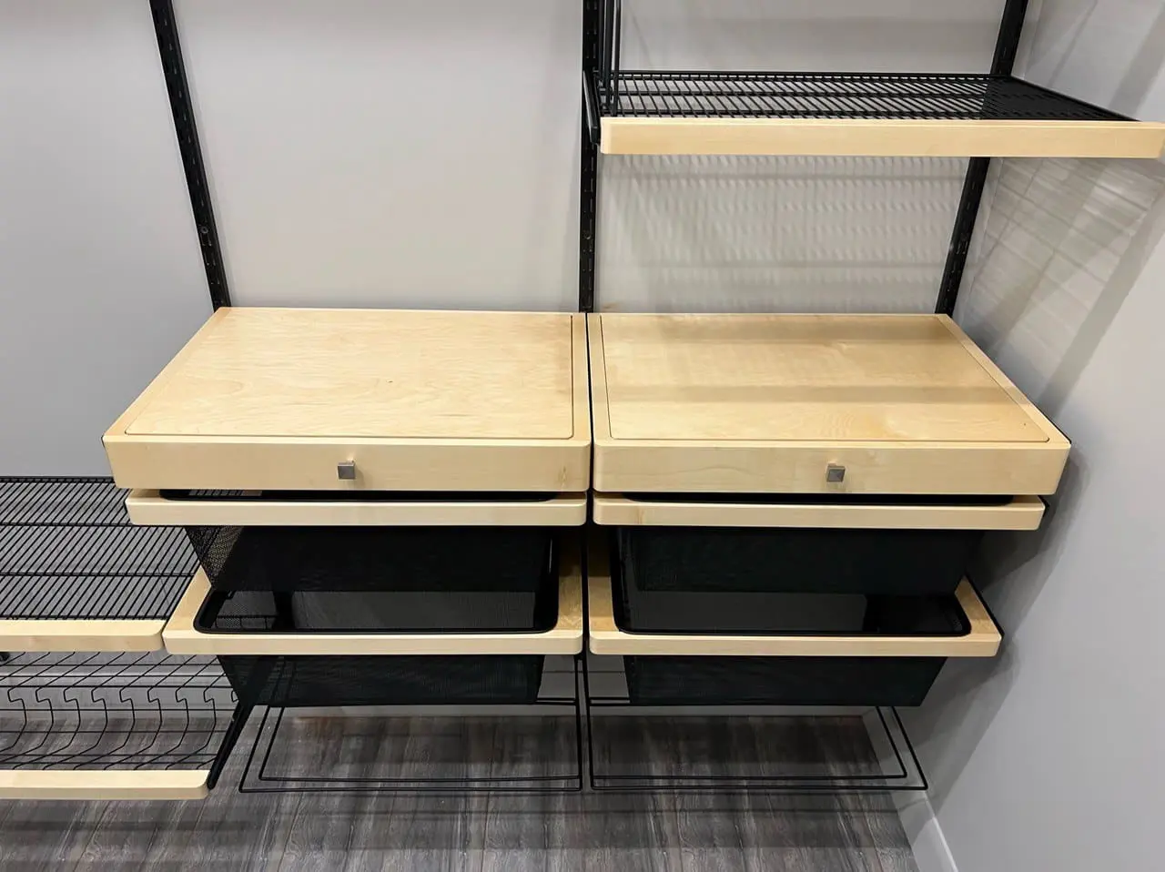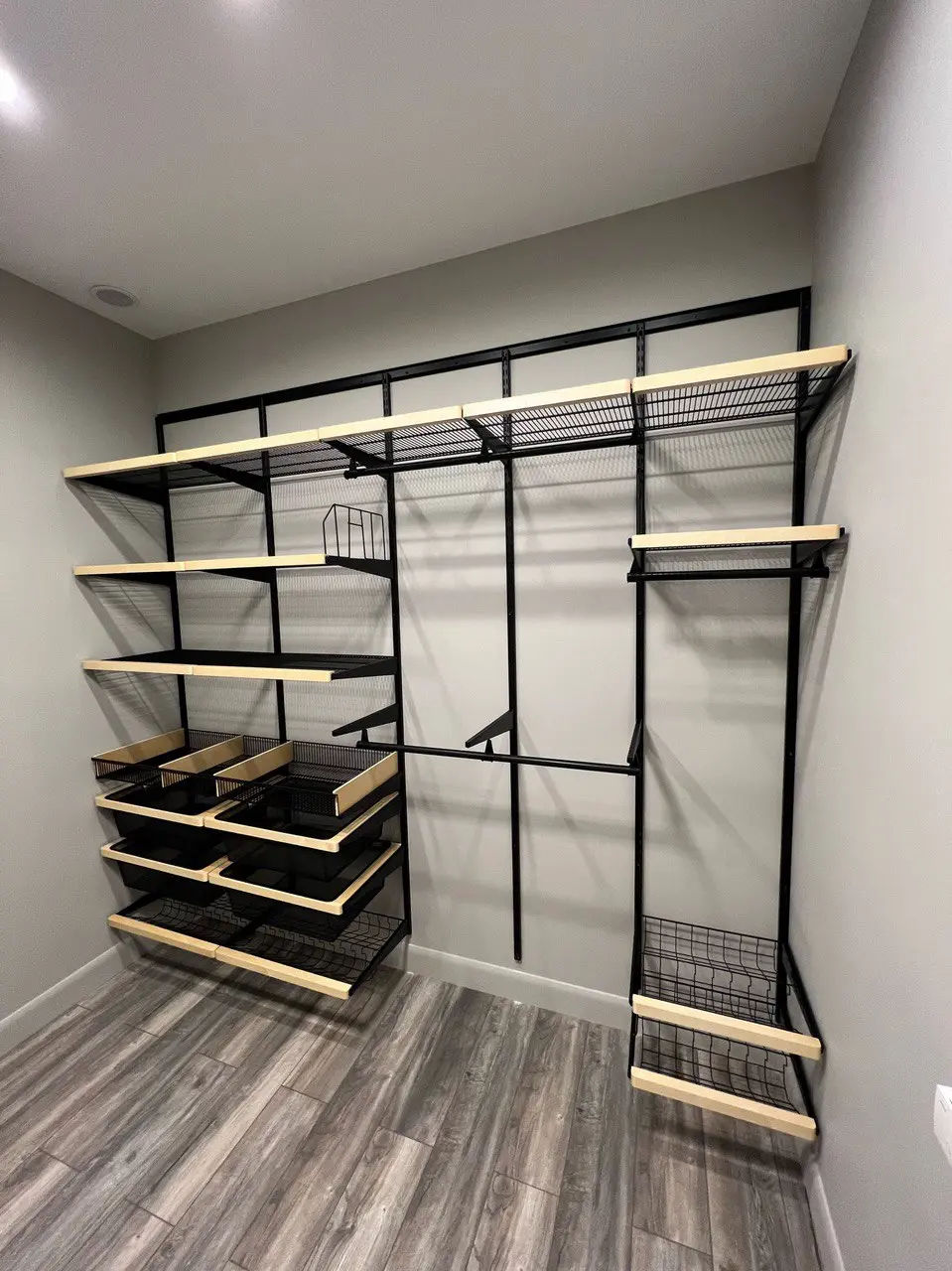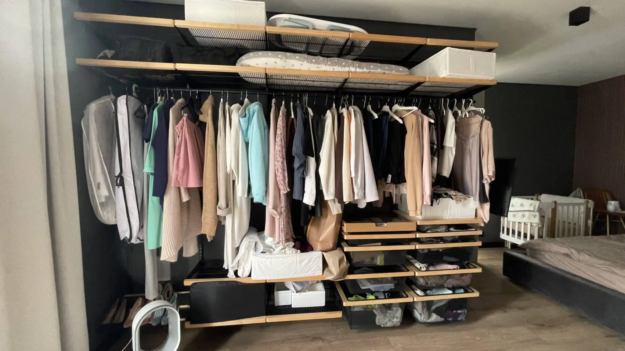 Гардеробная с черной системой хранения