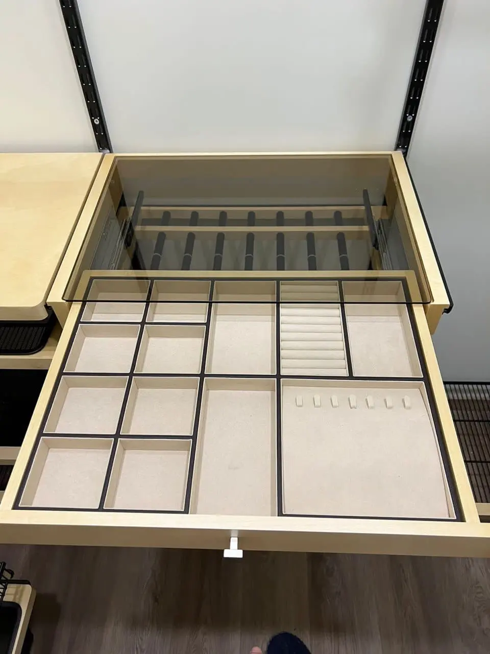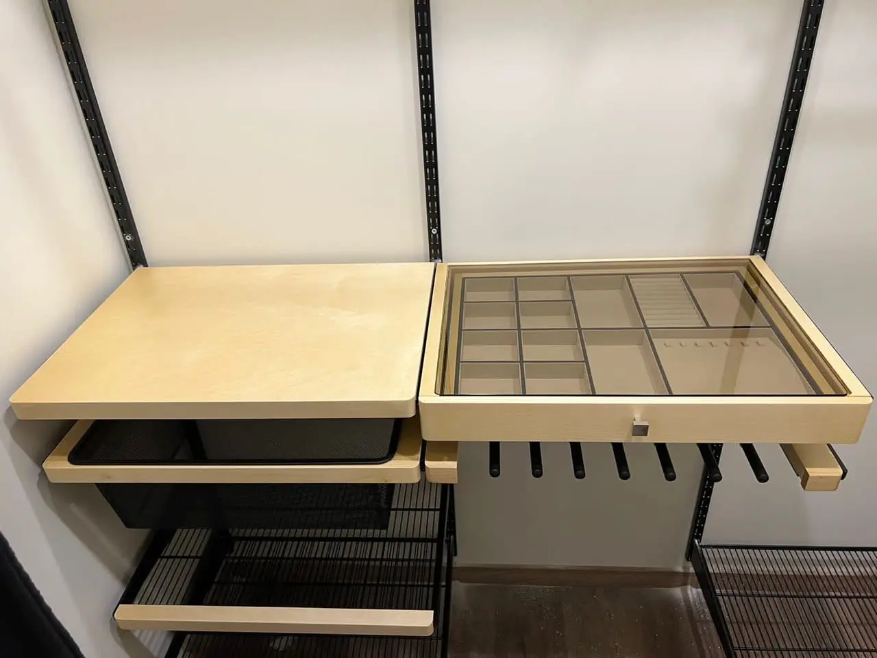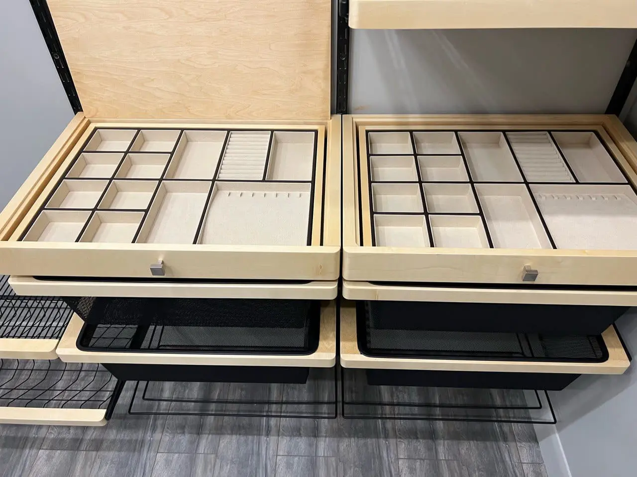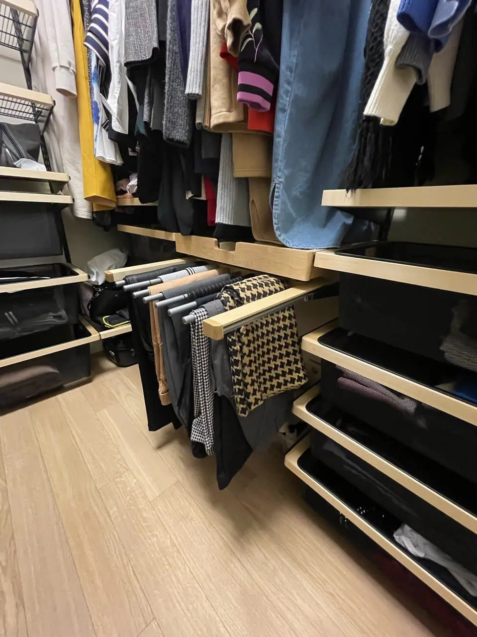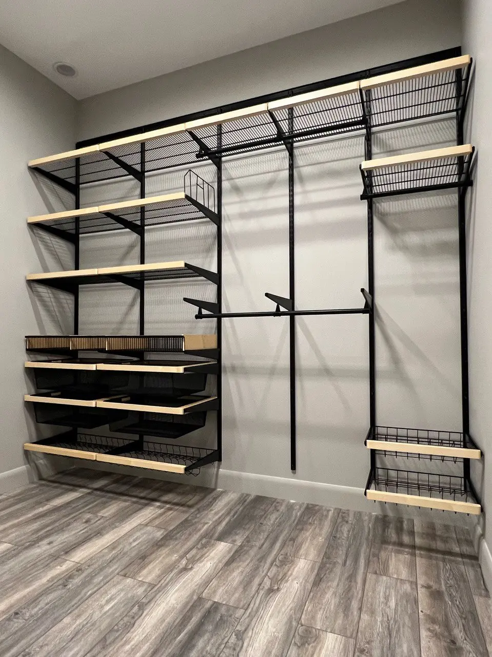 Гардеробная с черной системой хранения
