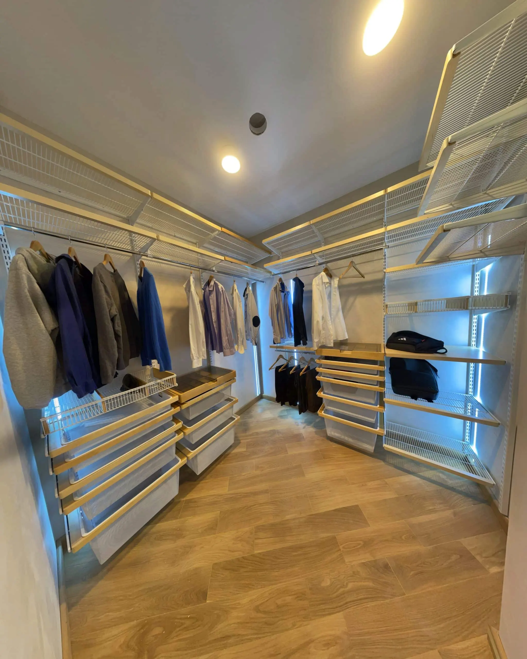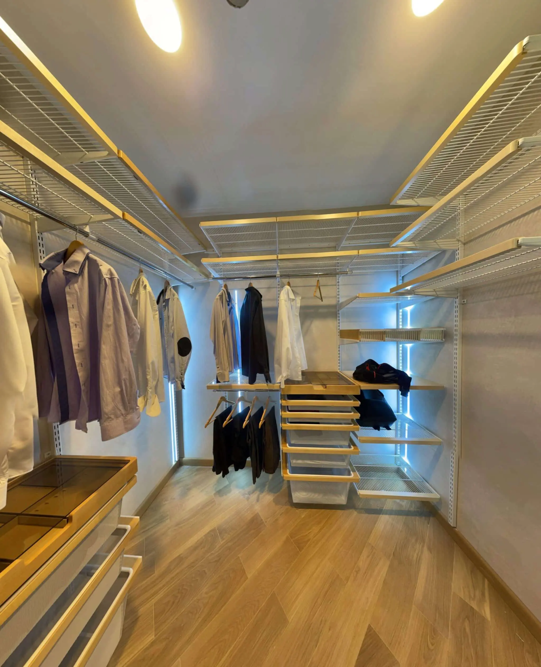 Белая гардеробная с подсветкой
