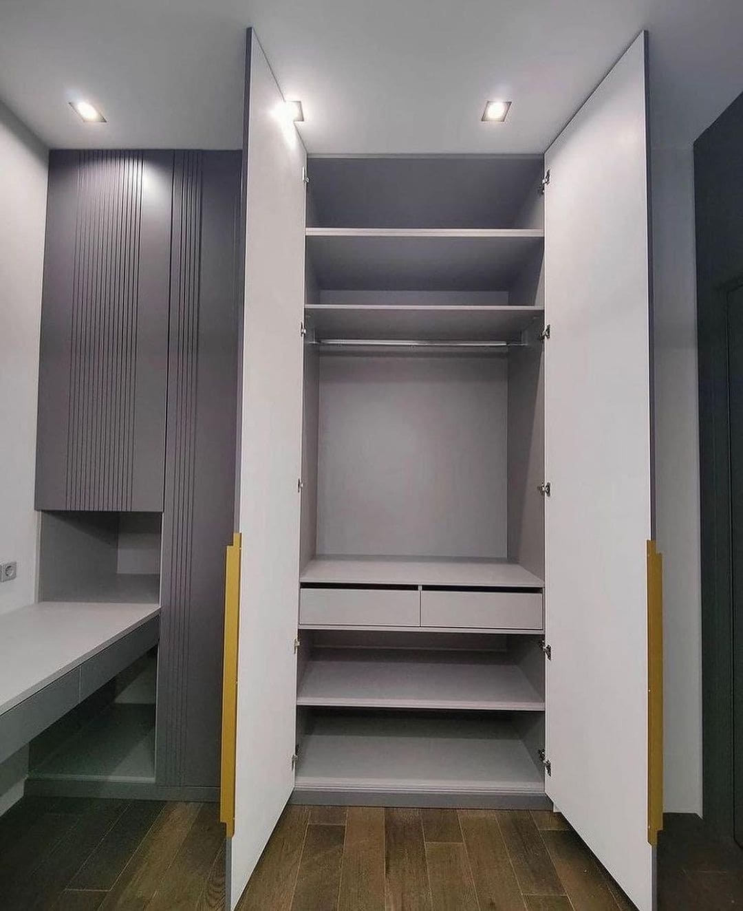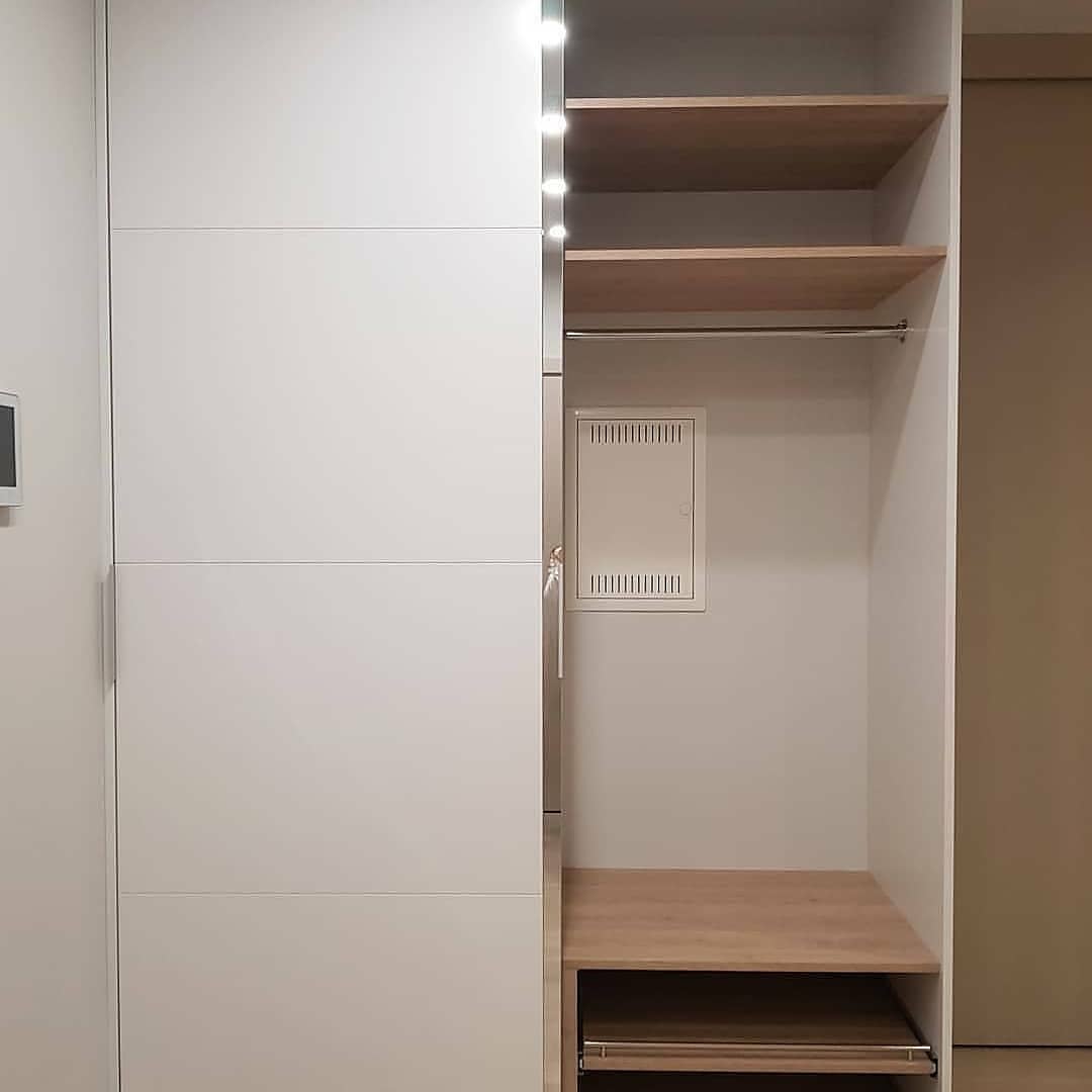 Заказала два распашных шкафа в прихожую, потому что устала от беспорядка и разбросанной обуви. Пространство небольшое, но дизайнер грамотно всё спланировал: сделали антресоль, отдельную секцию для верхней одежды и ящики для мелочей. Фасады выбрала светлые, чтобы не «утяжелять» коридор. Изготовили вовремя, установили аккуратно, без суеты. Дверцы открываются легко, ничего не перекошено. Шкафы получился удобным и очень функциональным, теперь прихожая выглядит аккуратно и просторно.
